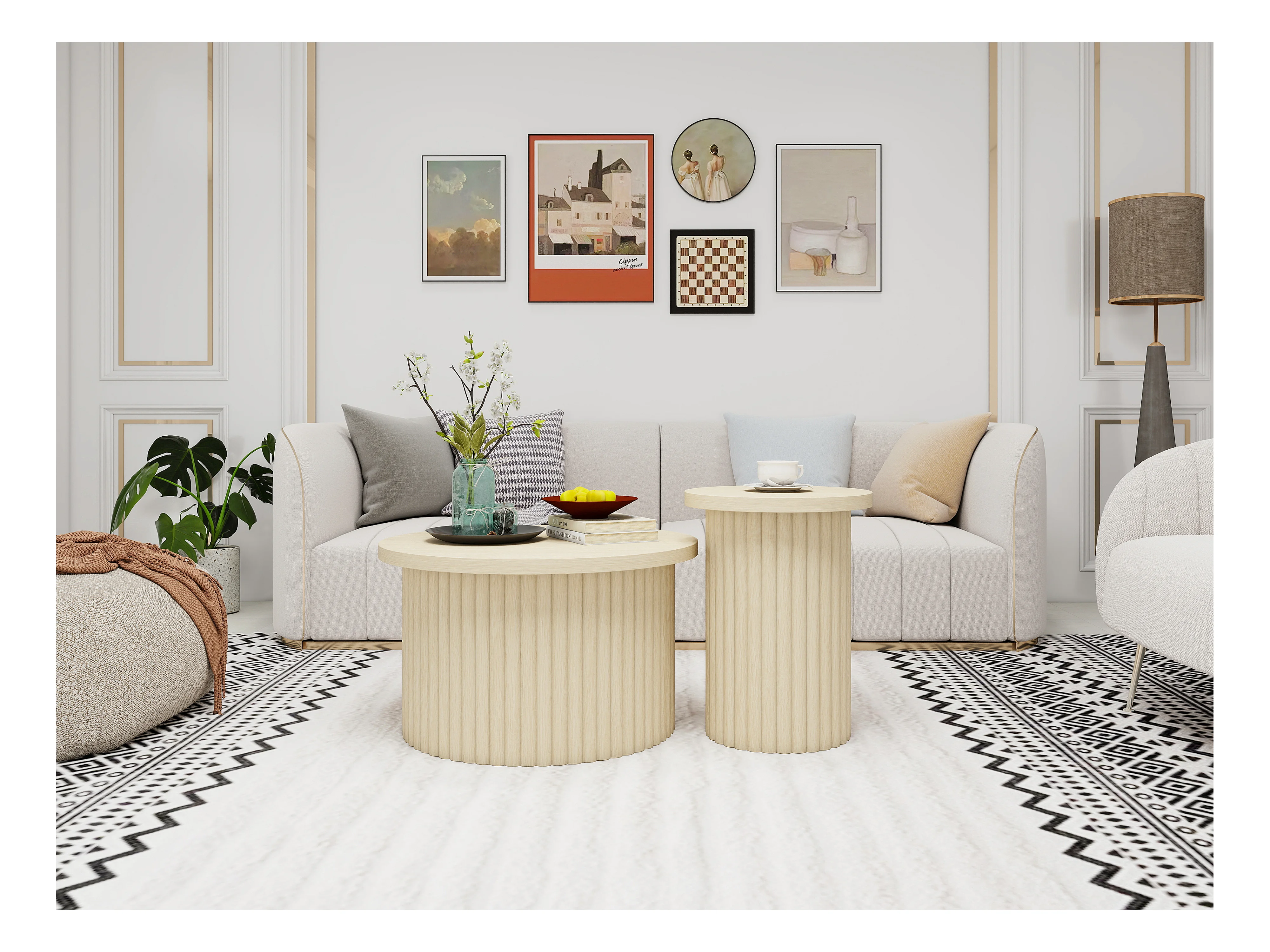 Lot de 2 tables basses modernes avec plateau rond en bois veiné - pour salons et bureaux