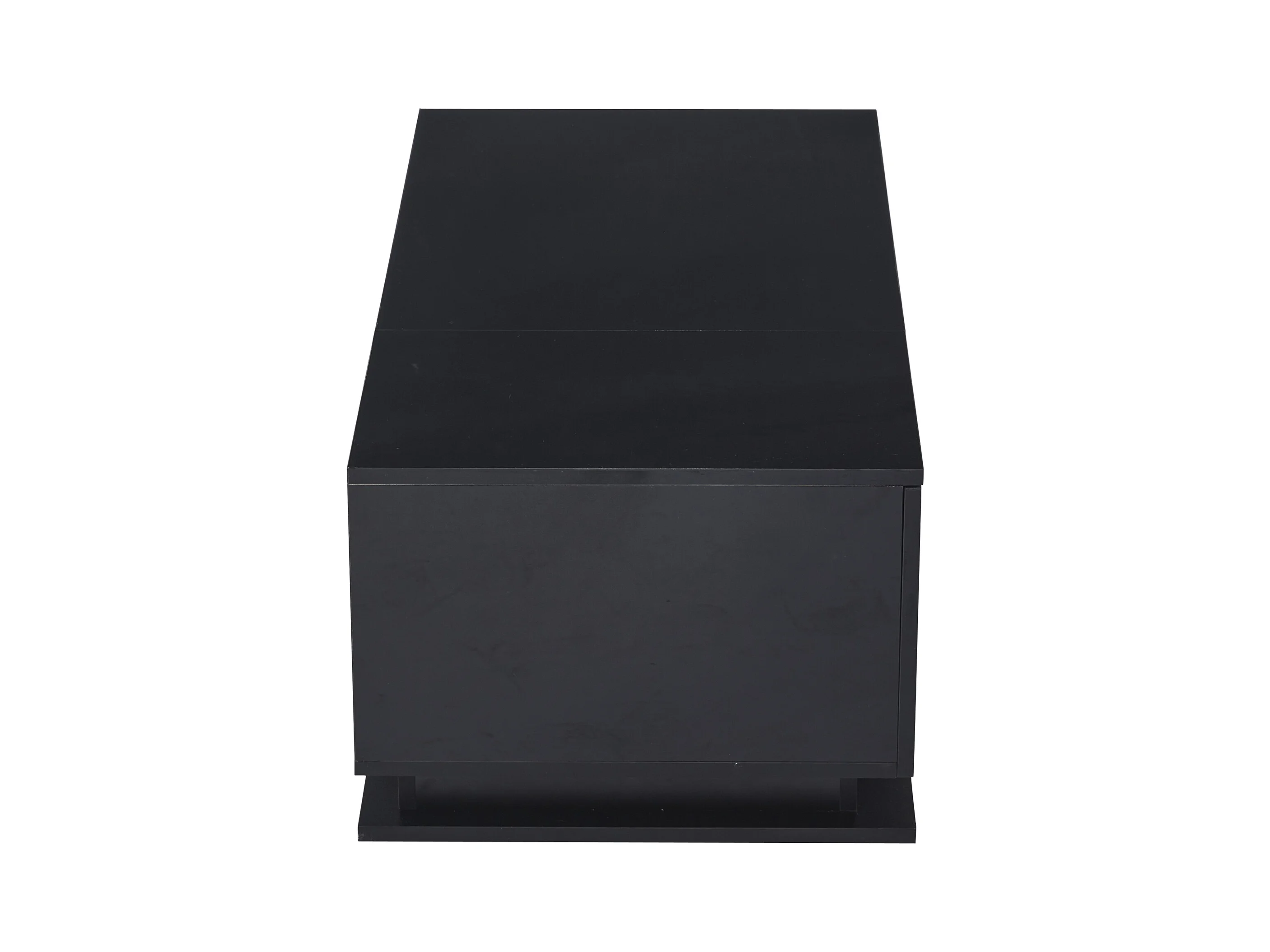Table basse noir brillante - Table basse avec 2 tiroirs et éclairage LED - panneau de porte rabattable