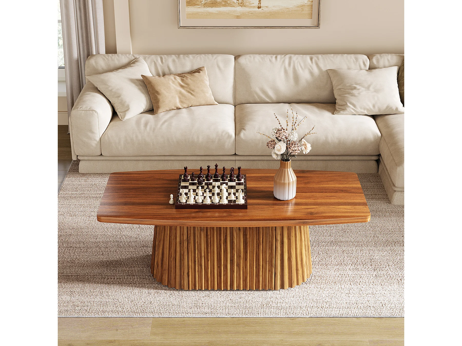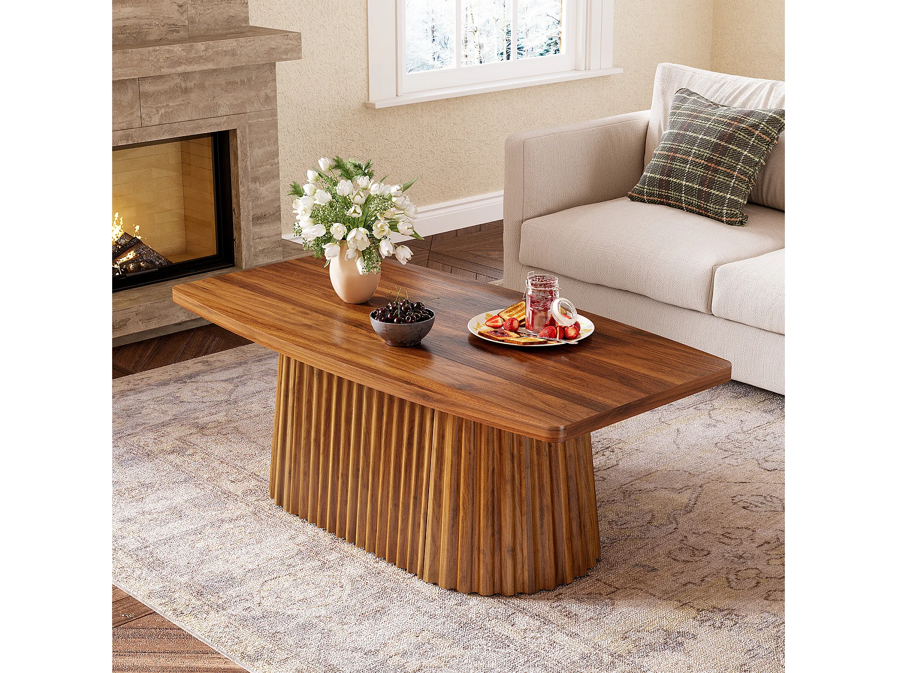 Table basse rectangulaire, table d'appoint de style campagnard de 120 cm avec piètement plissé