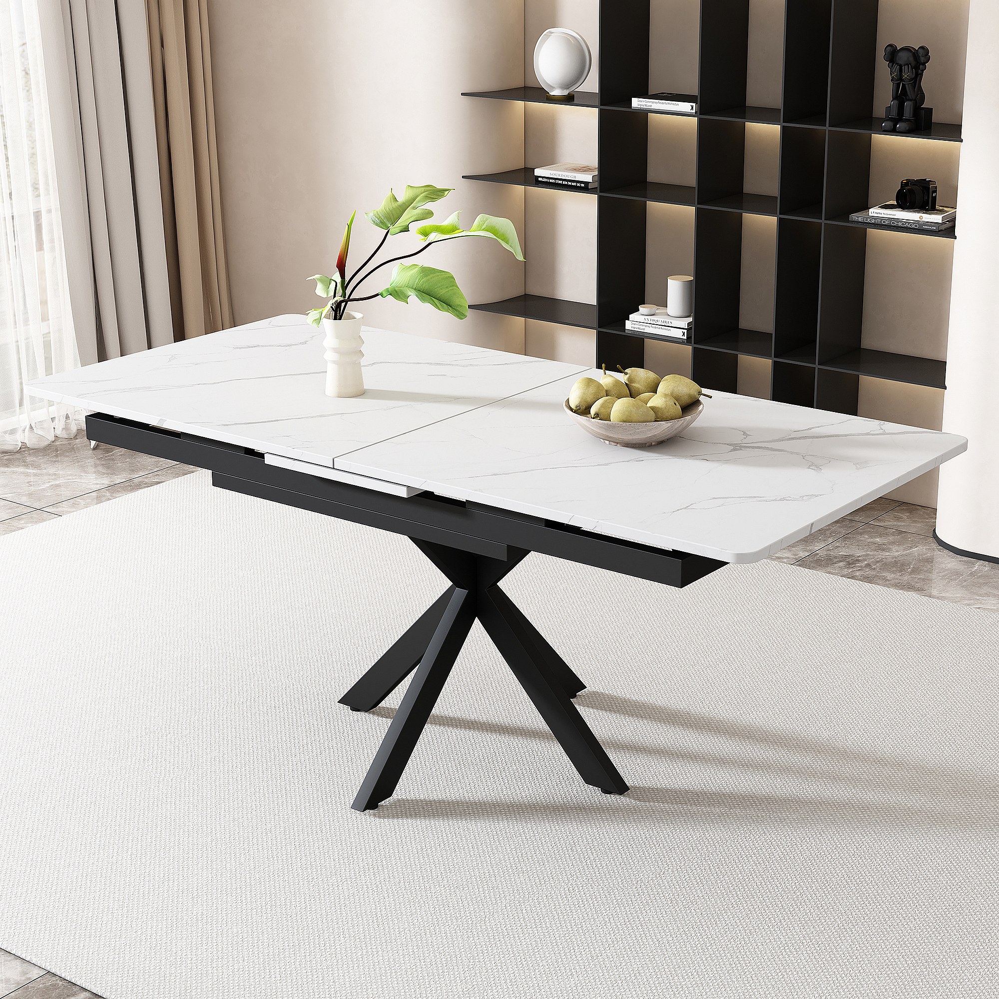 Table basse relevable extensible pour 4-6 personnes - pieds en métal - blanc (150/180x70x76 cm)