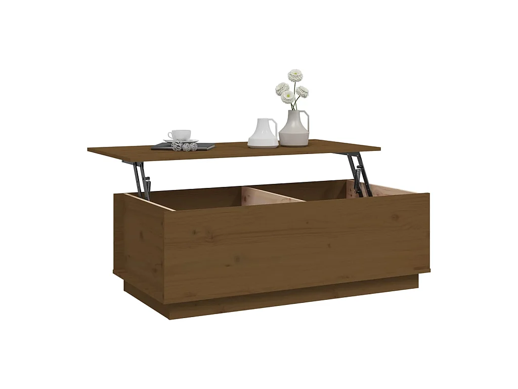 Table basse relevable Marron miel 100x50x35 cm Bois massif de pin OFR81156 BonneVie Meuble