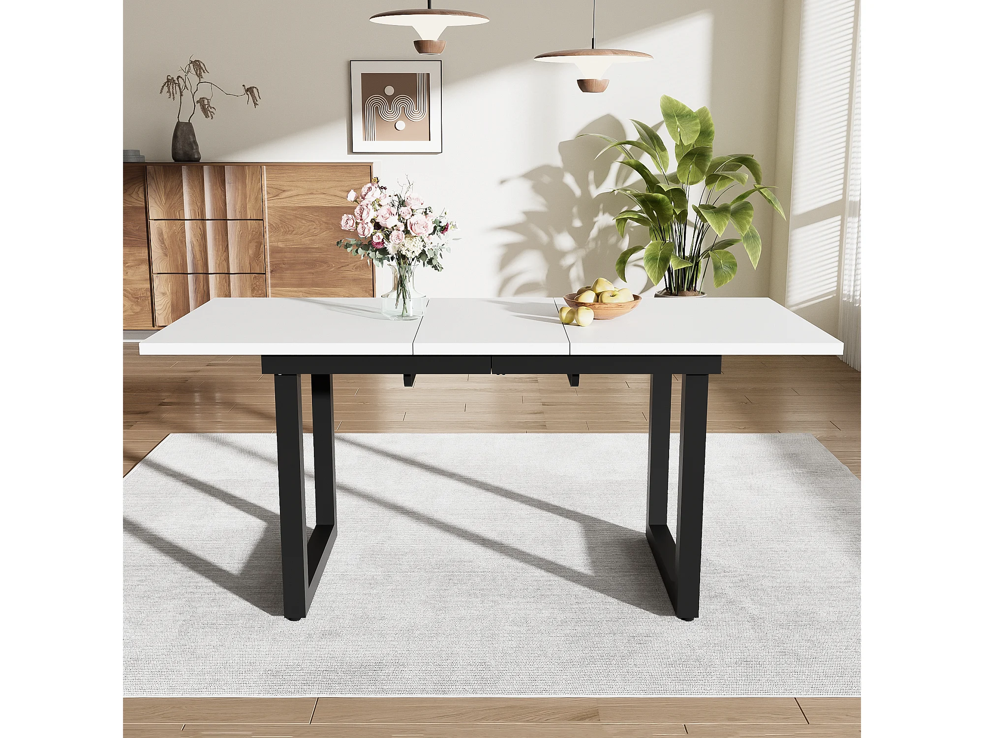 Table à manger extensible 140x80x75 cm, plateau réglable, style industriel, structure stable, MDF, blanc et noir