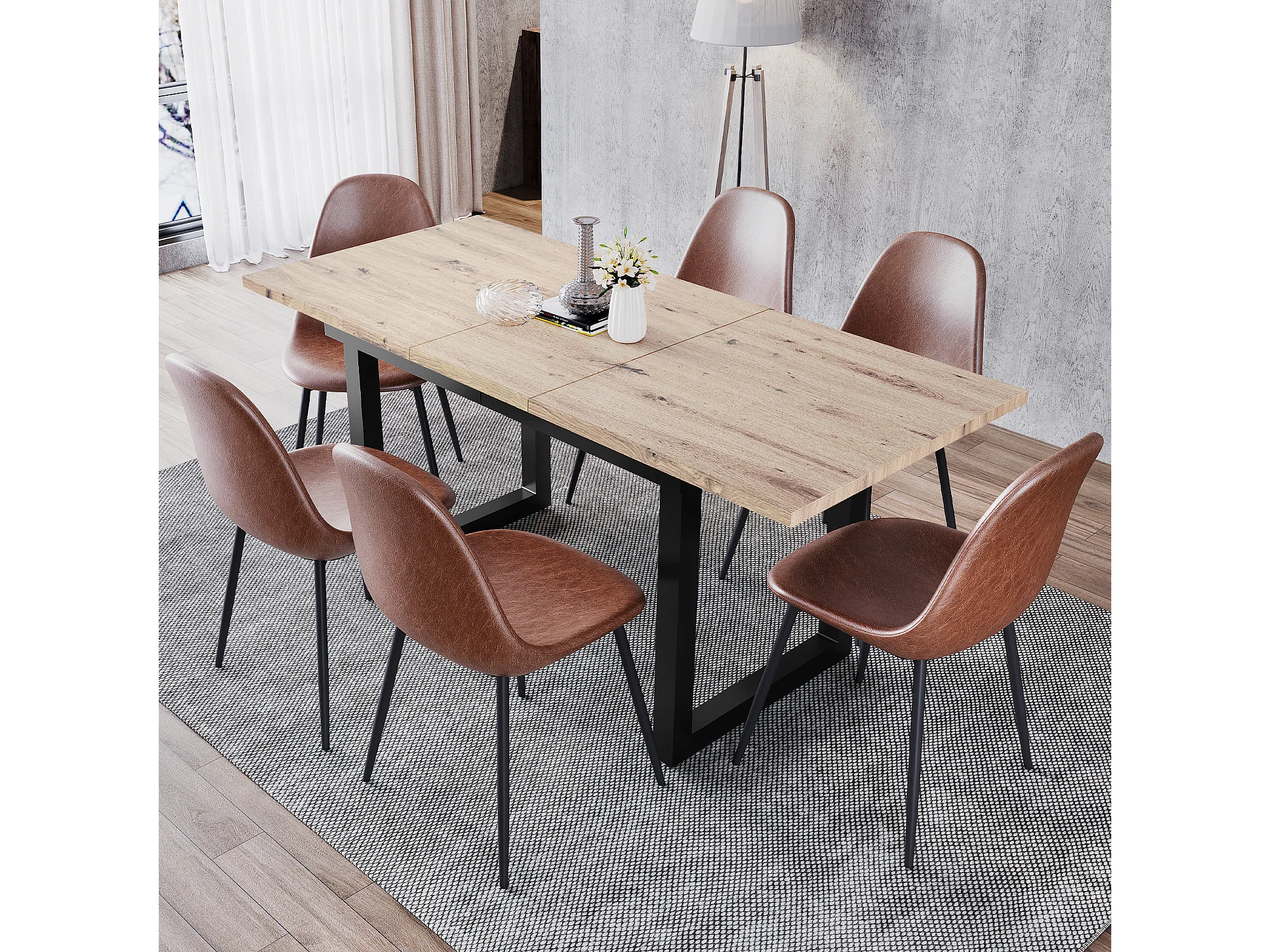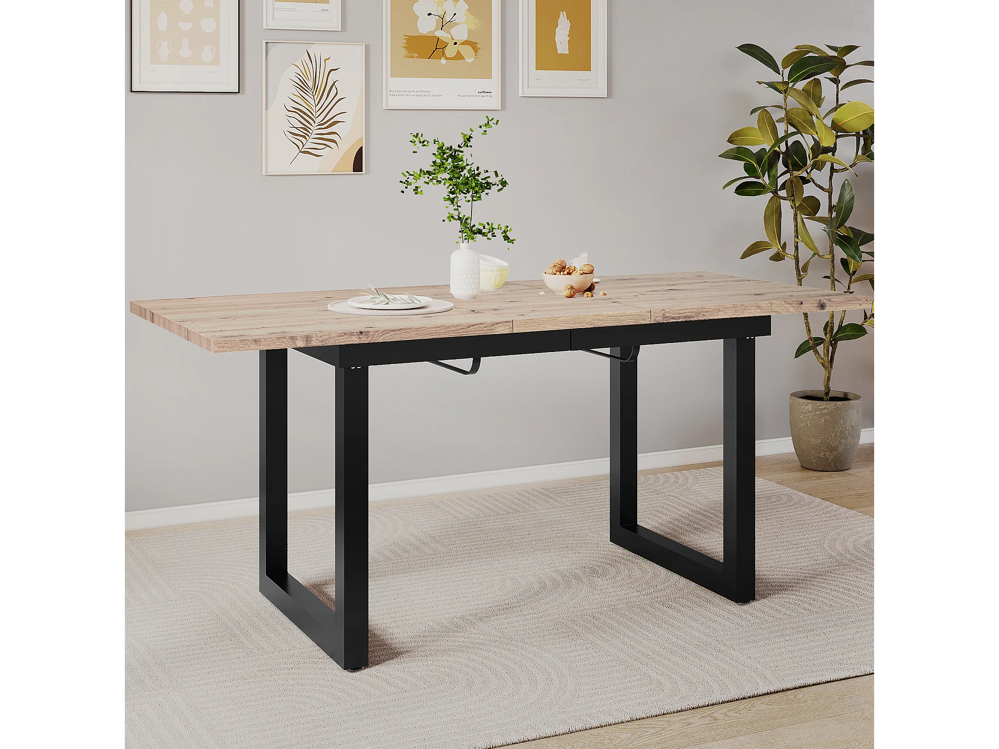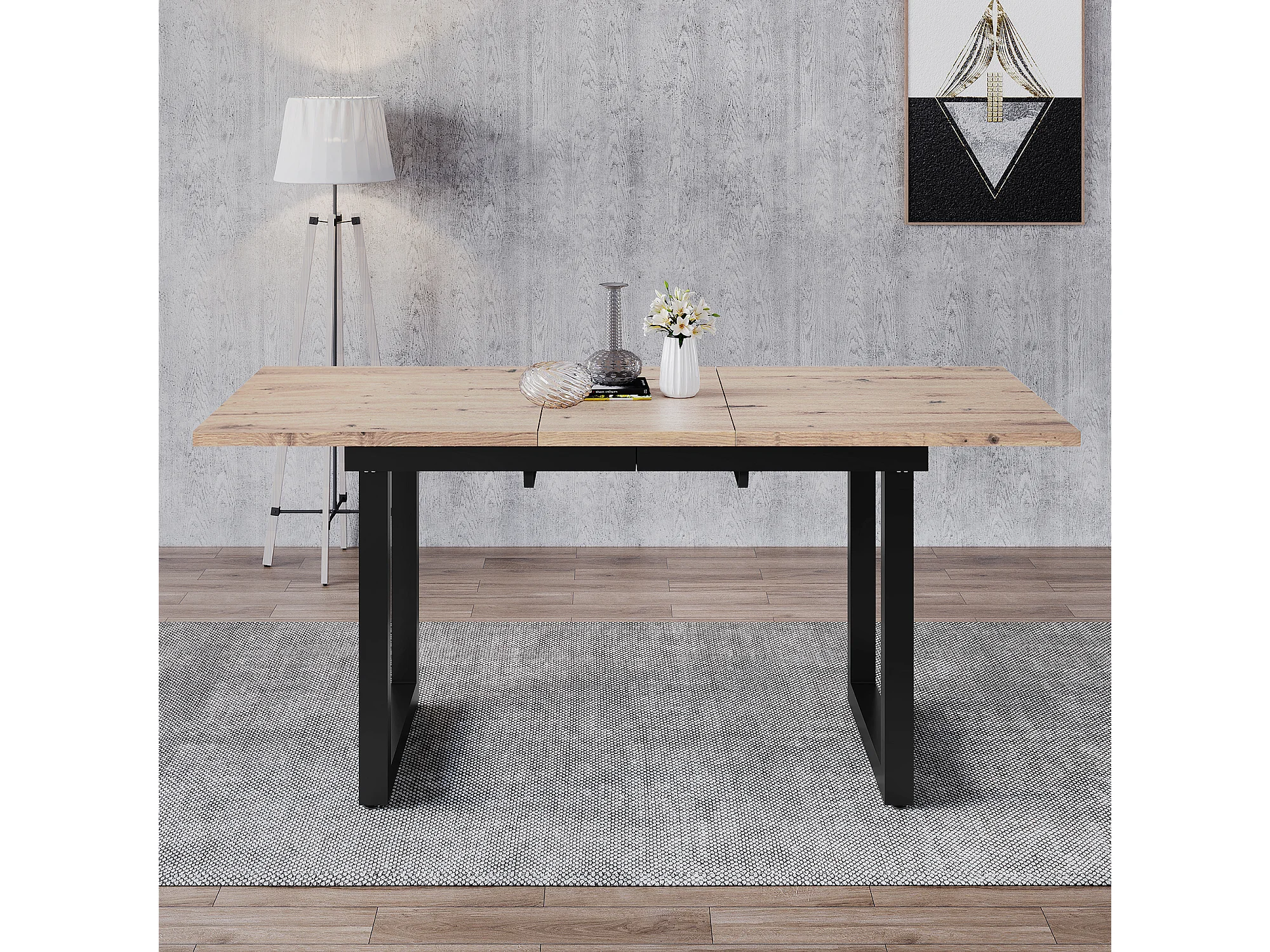 Table à manger extensible 140x80x75 cm, style industriel, structure stable, pieds réglables, MDF noir et naturel