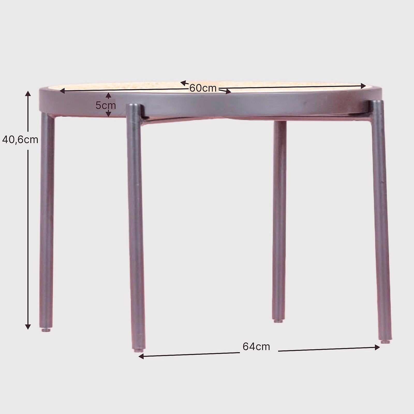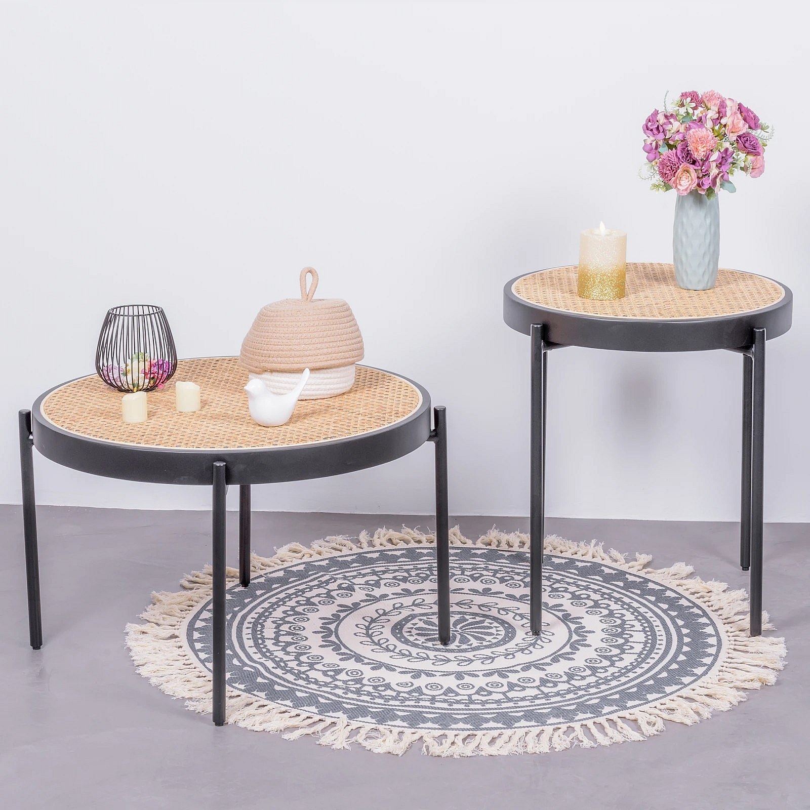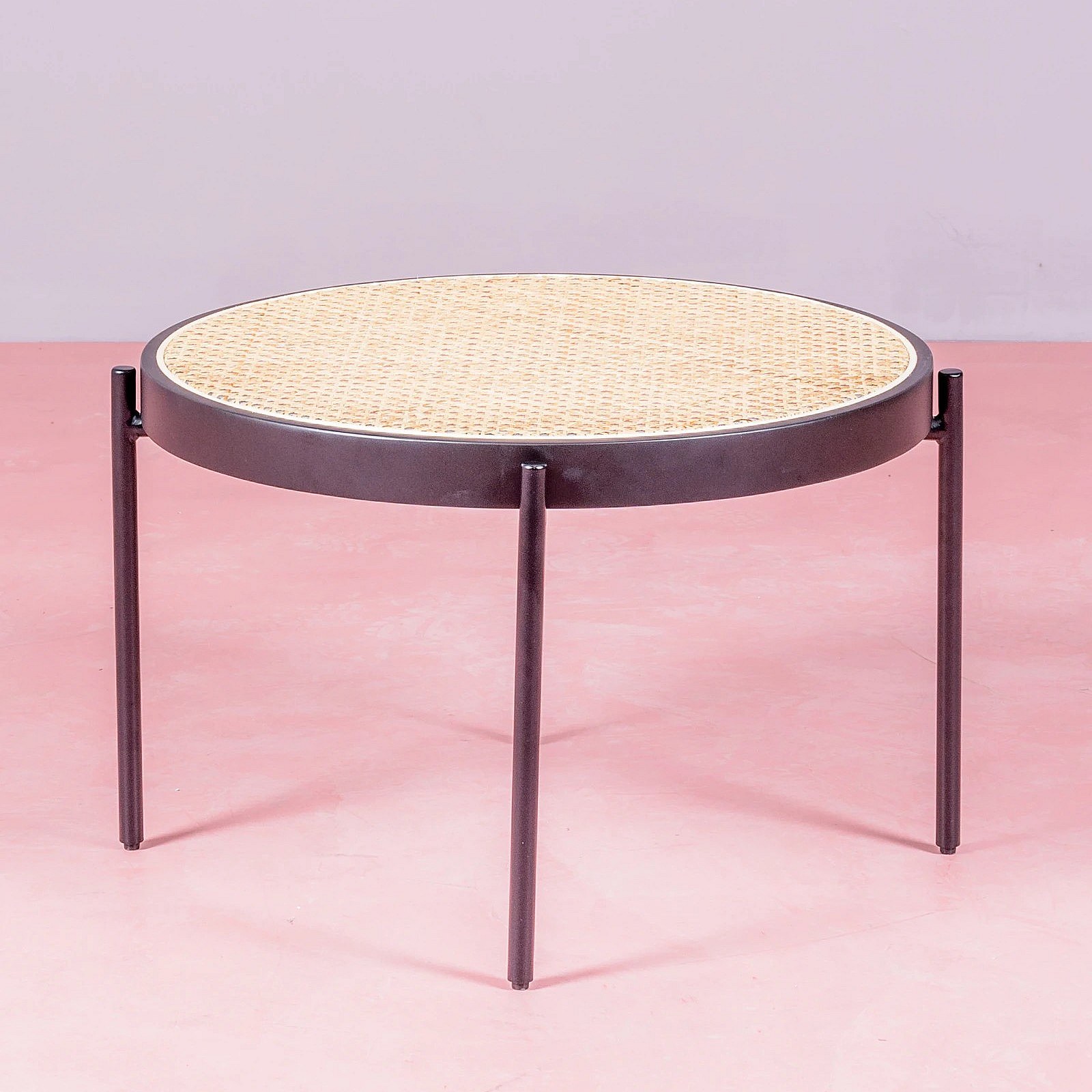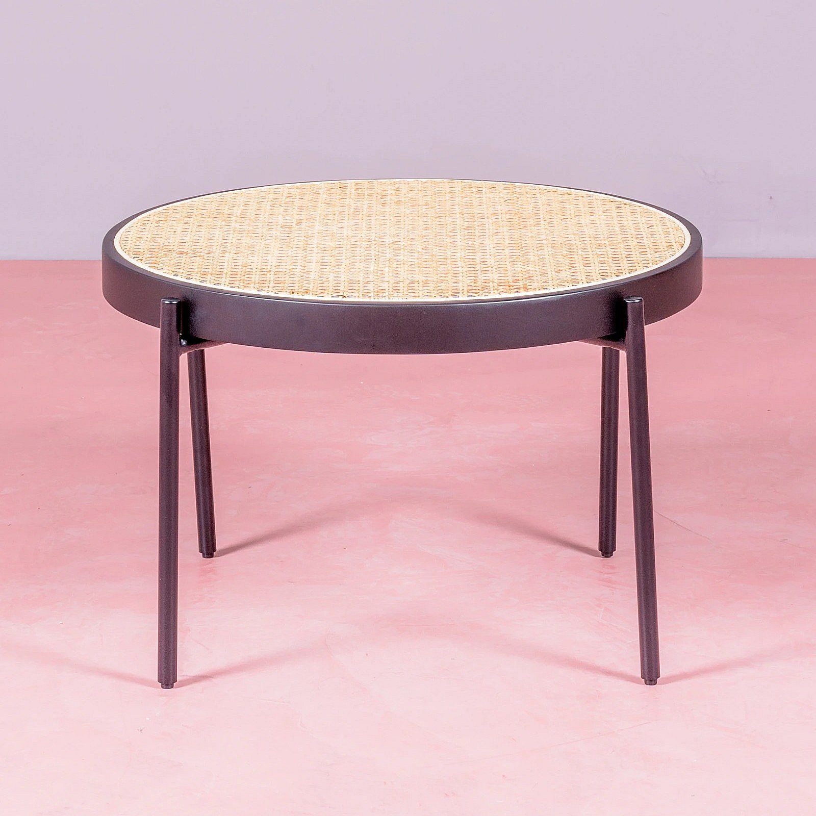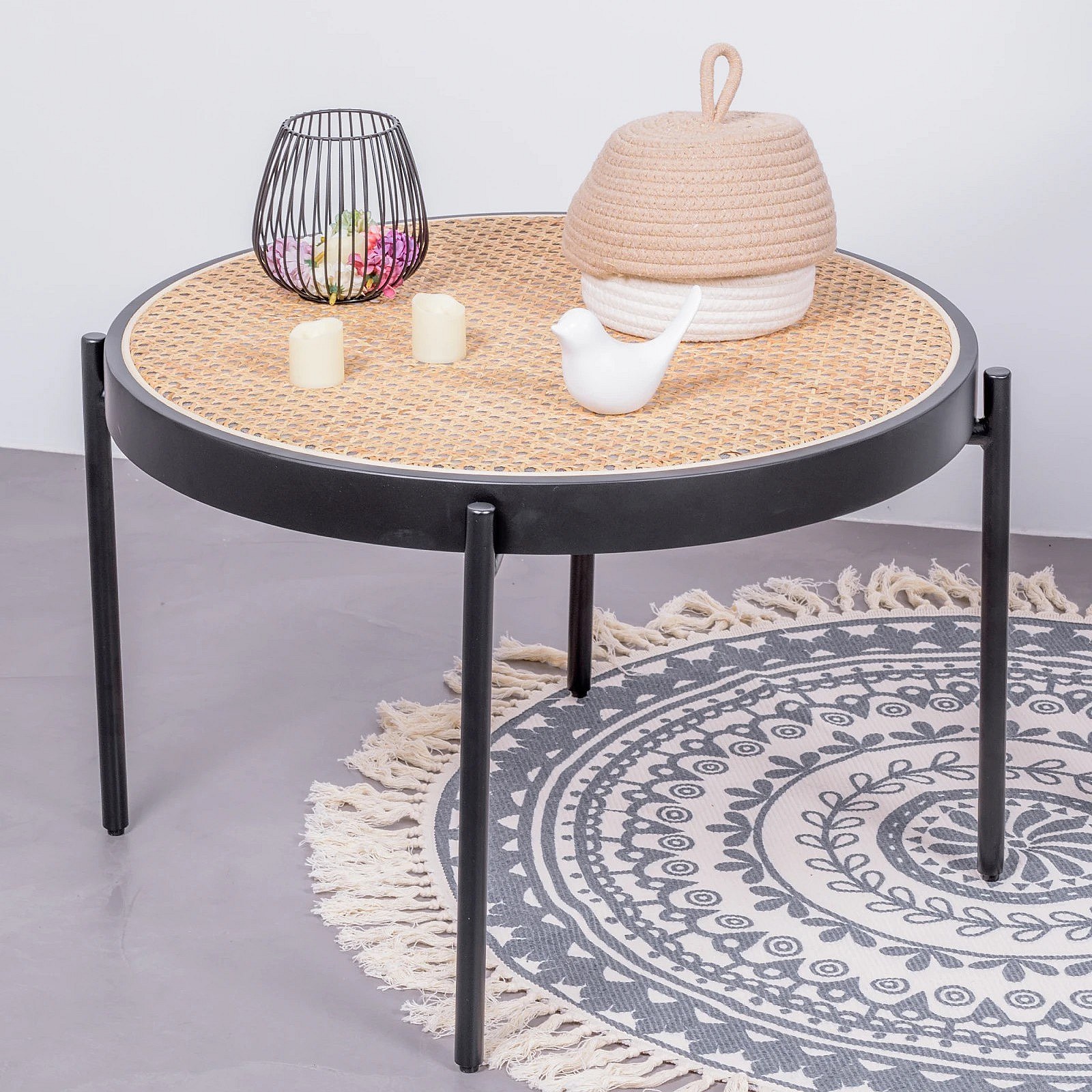 Table basse rétro avec détails en rotin naturel (60cm) - North - Noir
