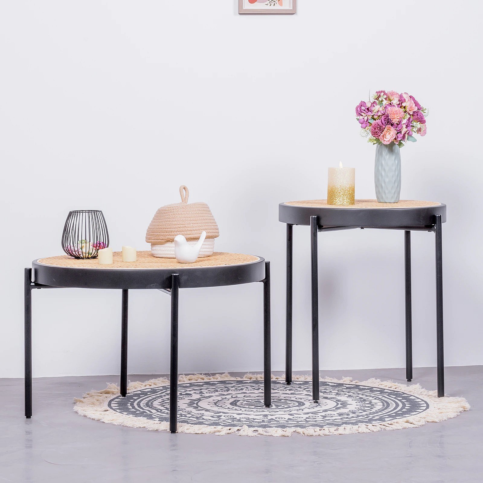Table basse ronde VITA Ø80cm - Bois naturel ou métal noir-Noir