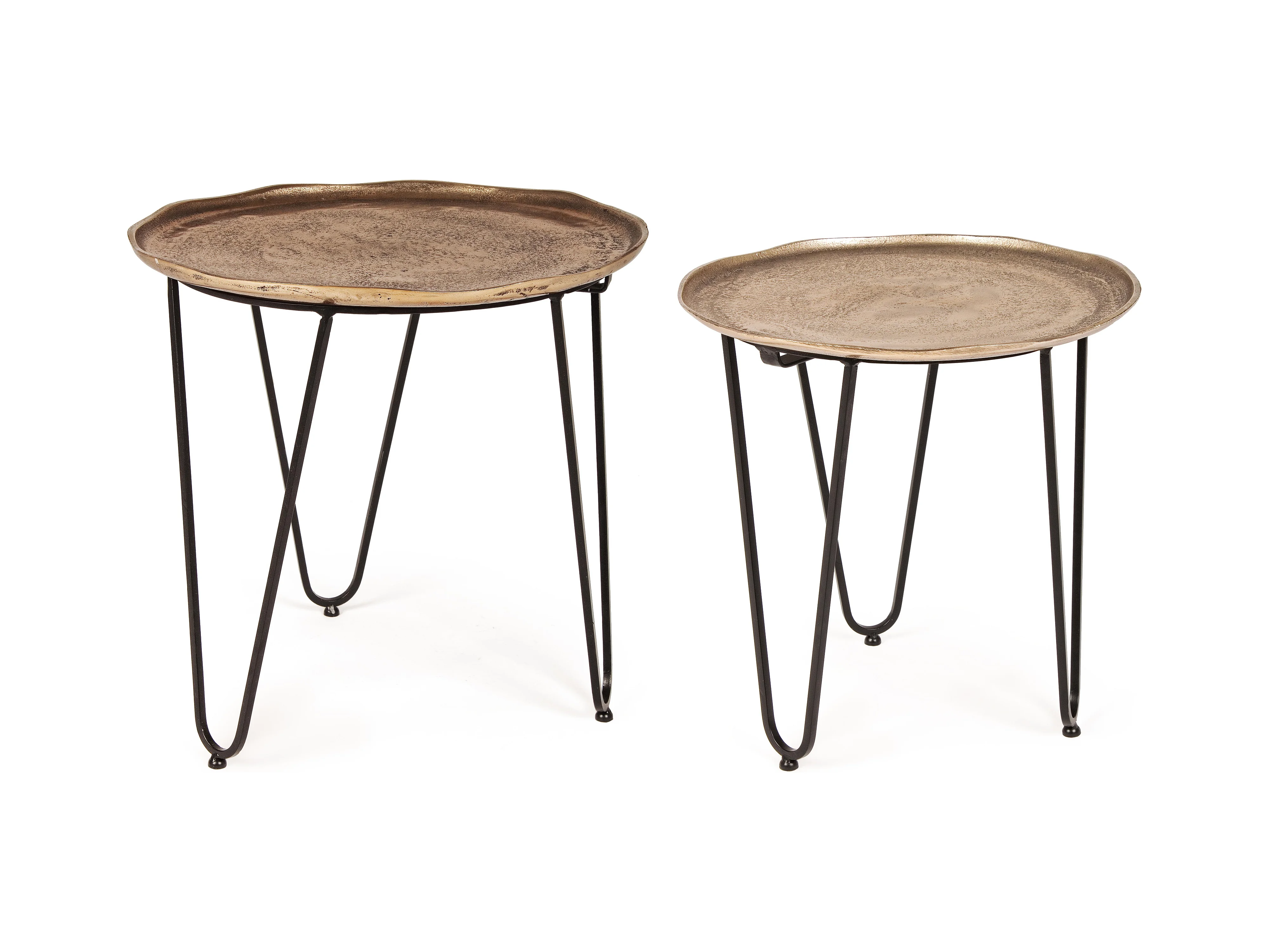Table basse ronde aluminium et pieds en acier Amina - Lot de 2