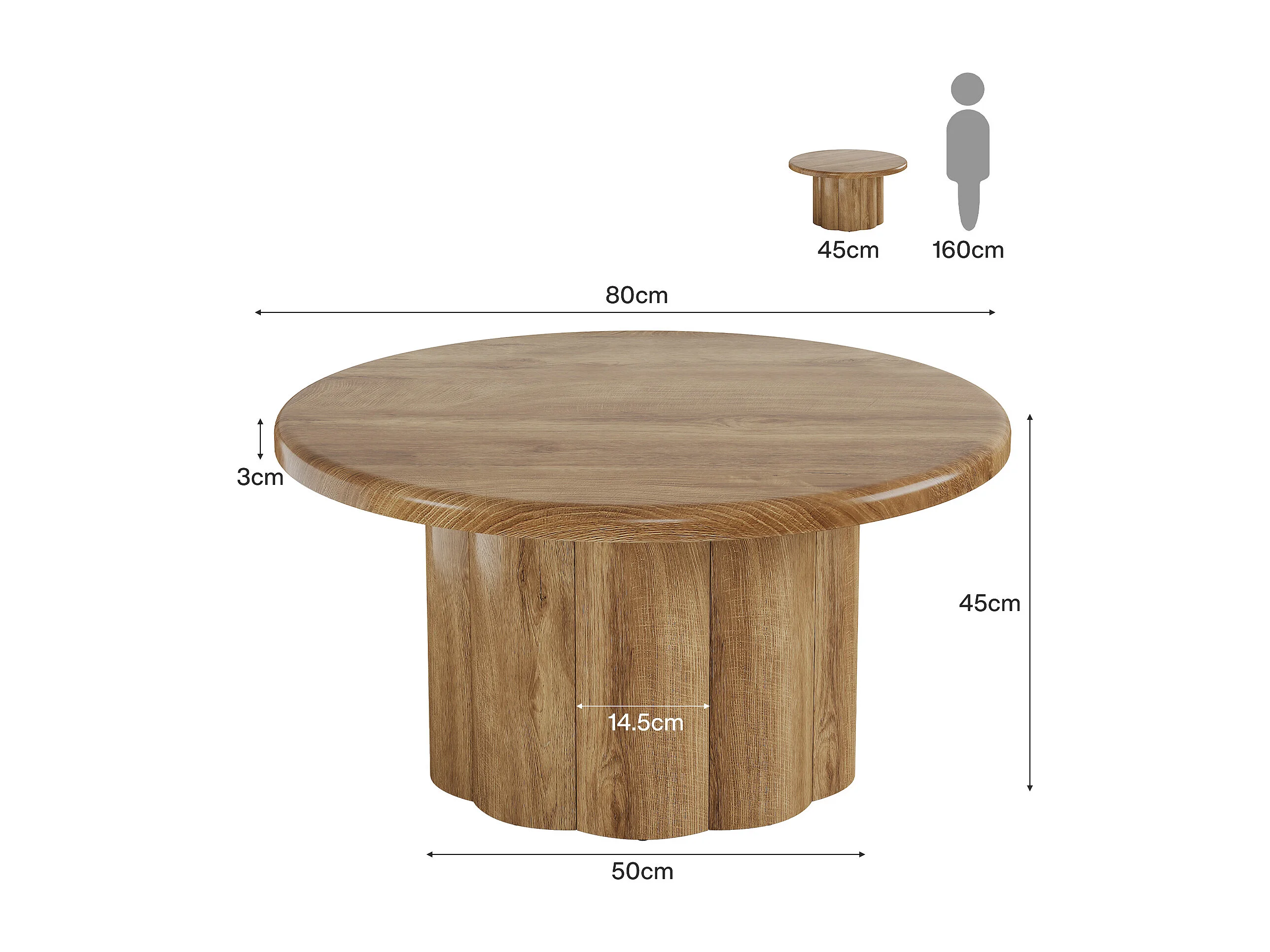 Table basse ronde de 80 cm pour salon, table basse ronde de style campagnard