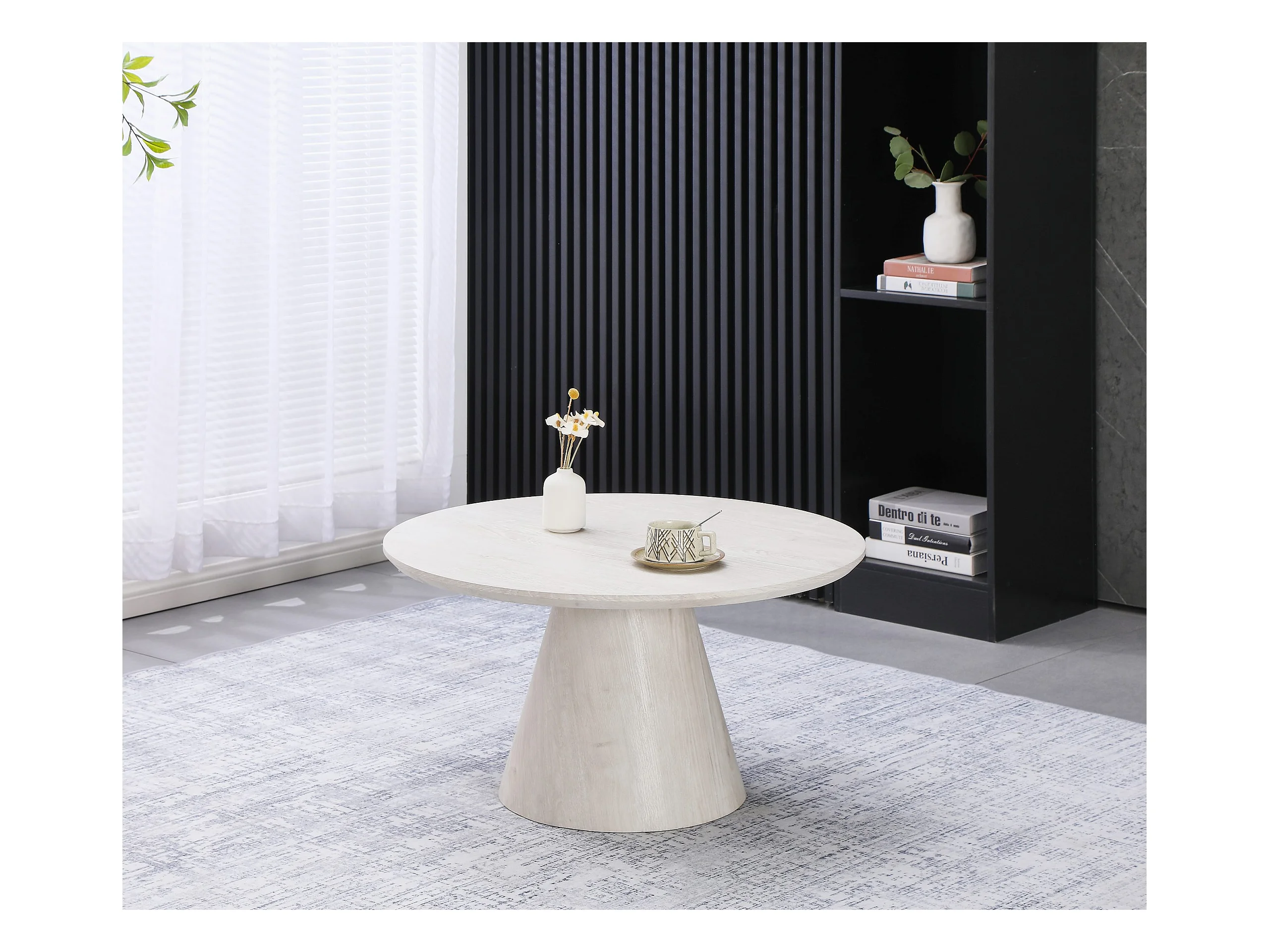 Table basse ronde - Effet bois chêne Blanc - Bois MDF - MANON