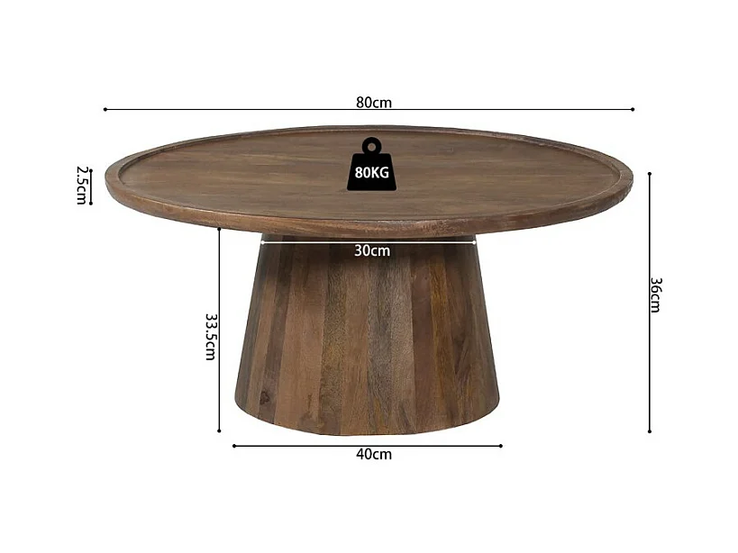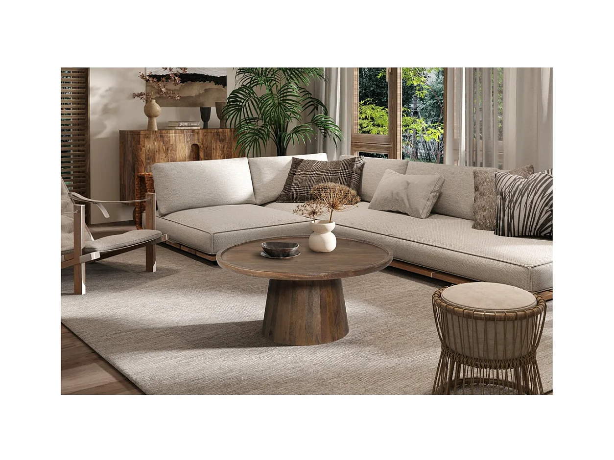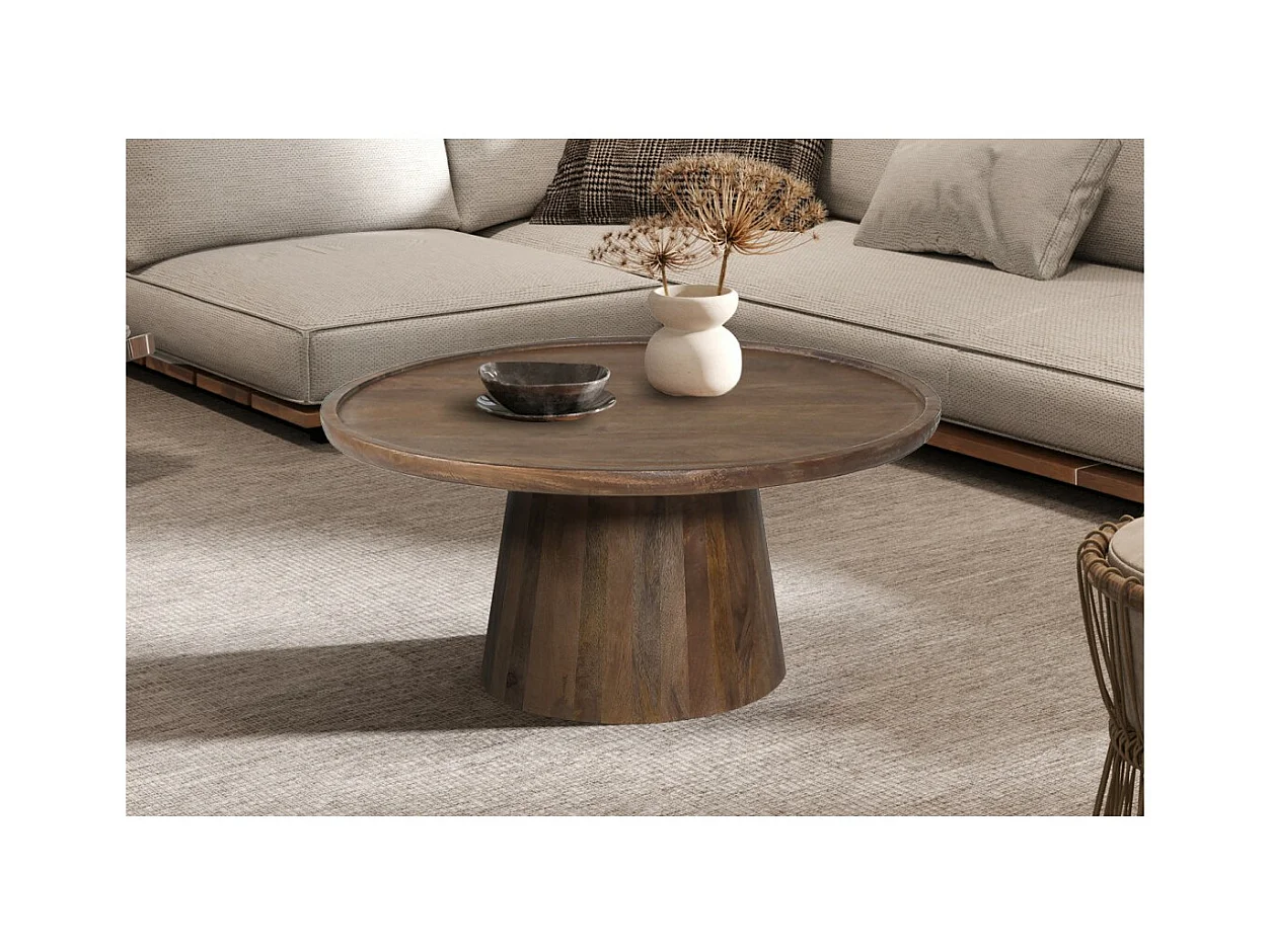 Table basse ronde en bois massif collection JAKARTA - Style ethnique et design - Diamètre 80cm