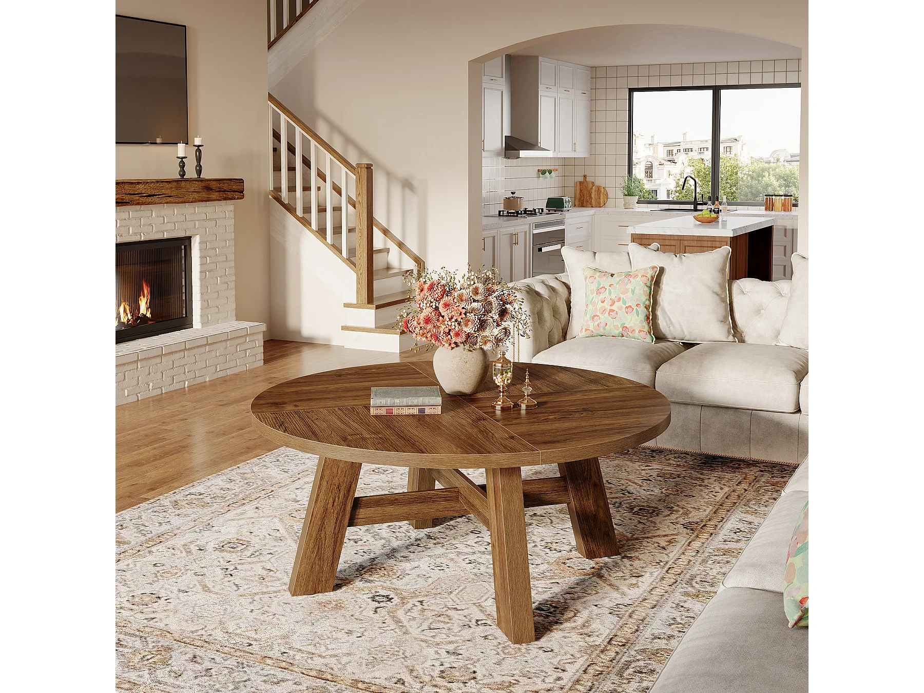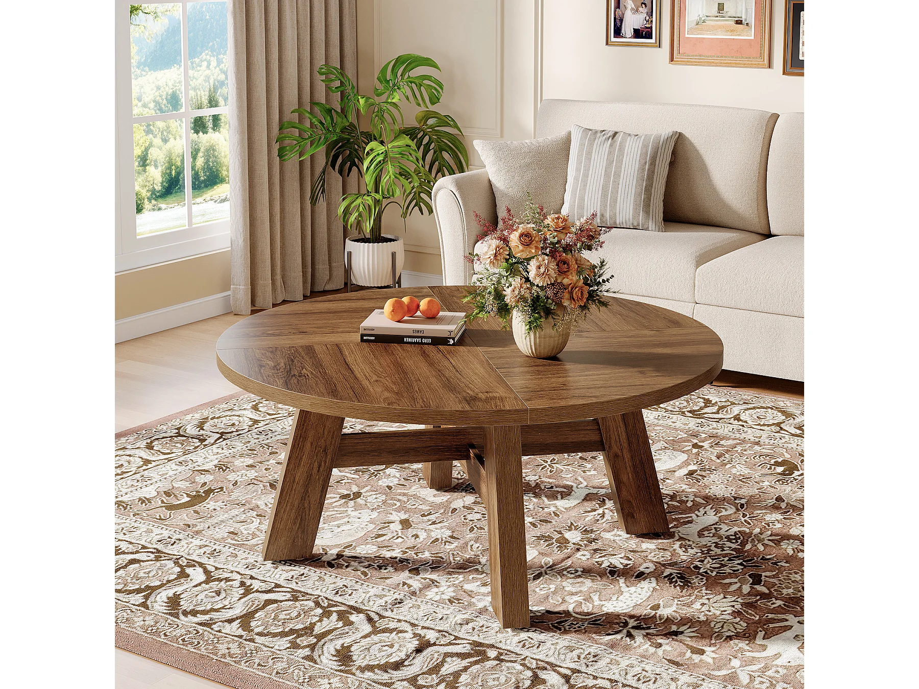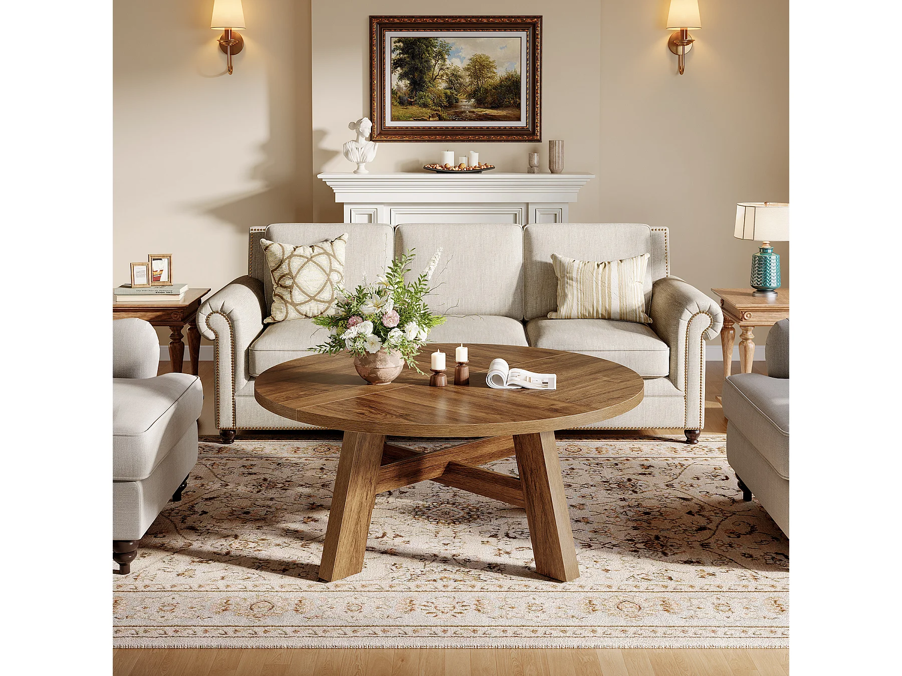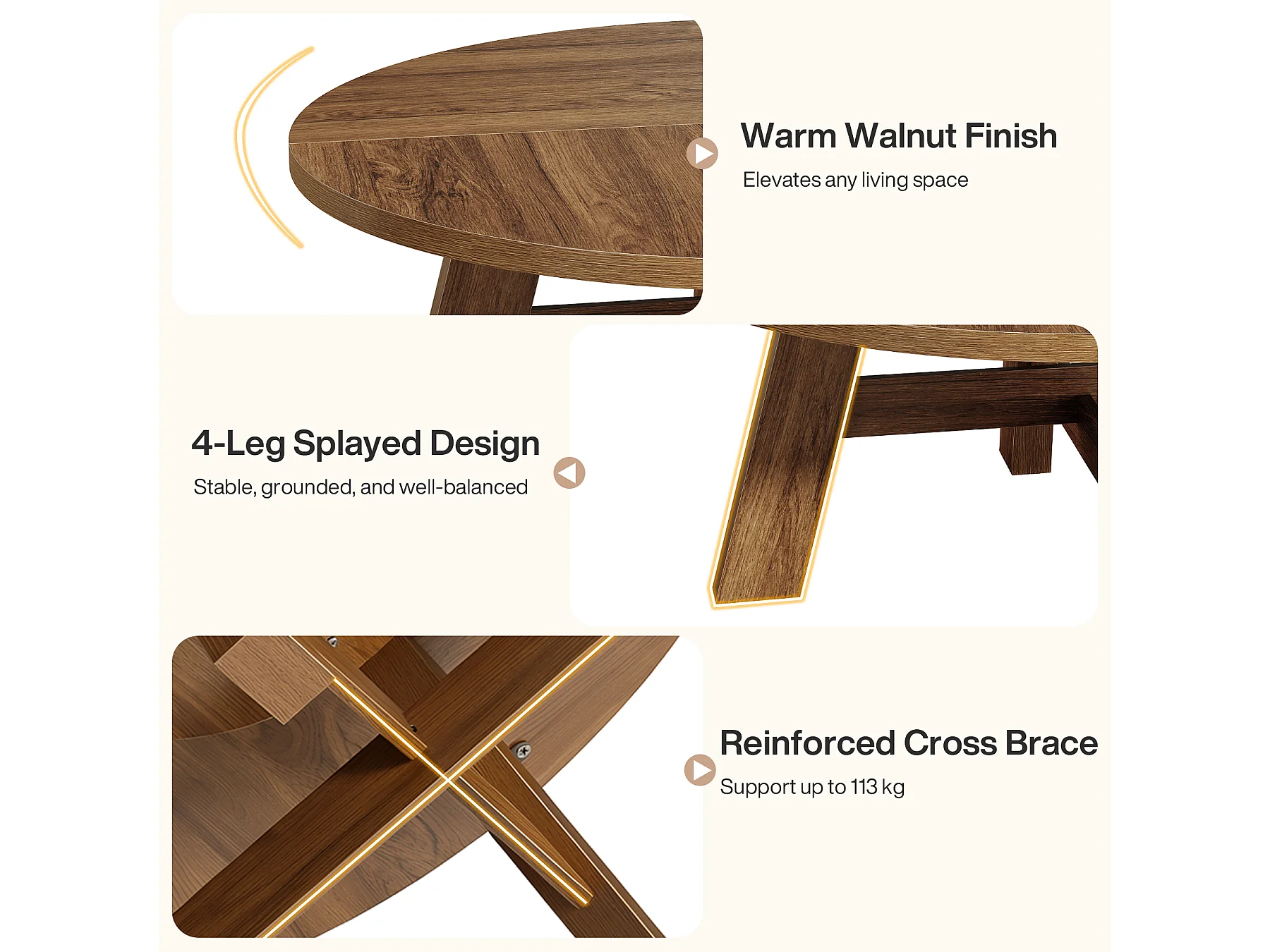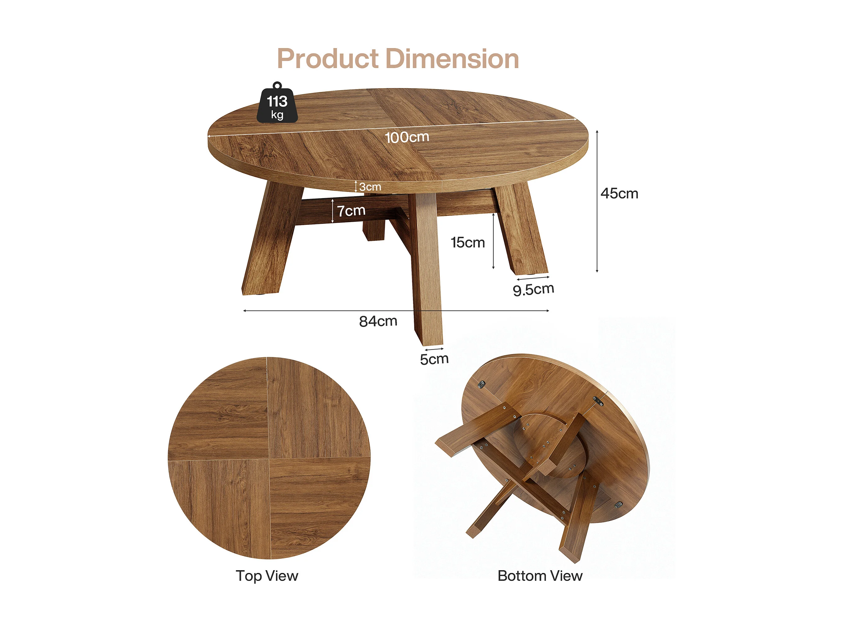 Table basse ronde, table basse circulaire de 100 cm avec traverse renforcée