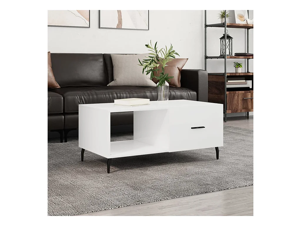 Table basse salon-Table d'appoint Blanc brillant 90x50x40 cm Bois d'ingénierie SHL31349