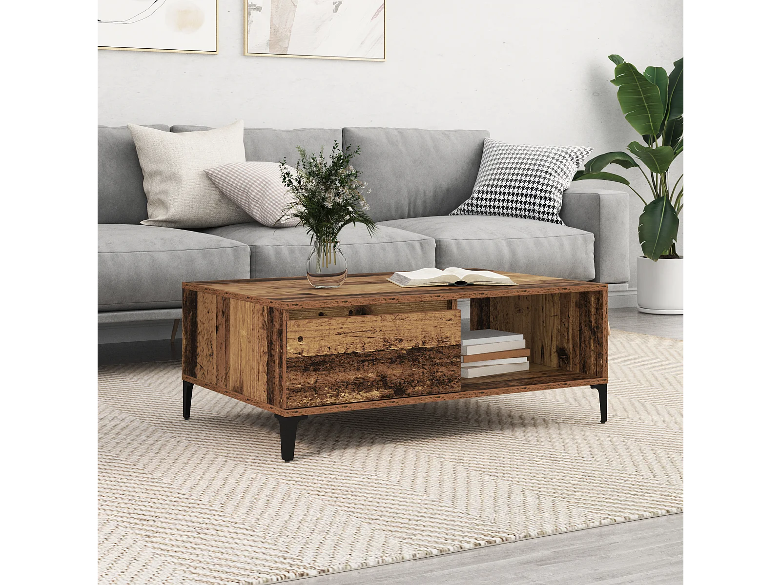 Table basse salon-Table à thé avec rangement vieux bois 90x45x35 cm bois d'ingénierie SHL22421