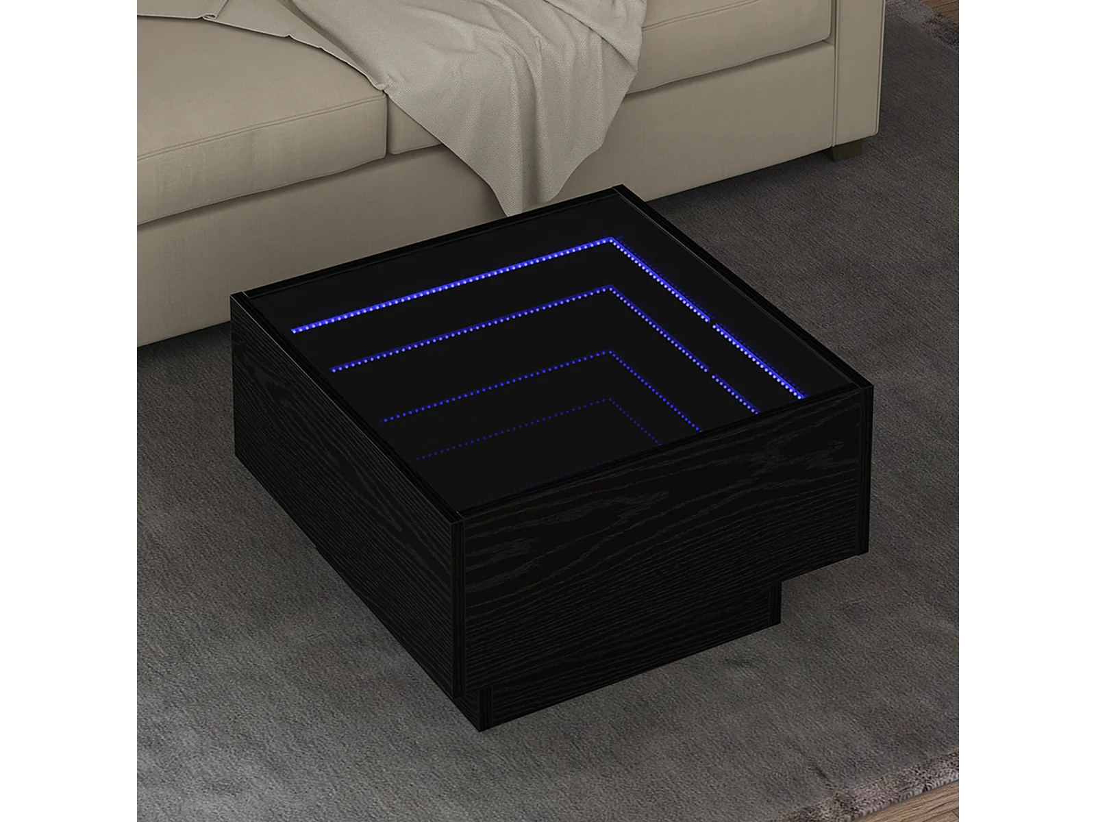 Table basse salon-Table d'appoint avec lumières LED chêne noir 50x50x40 cm SHL36263