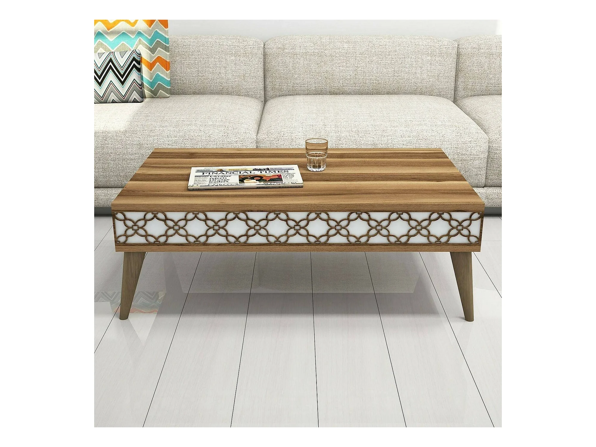 Table basse Kekouan, Table basse, Porte-revues pour canapé, Etagère de salon, 102x60h38 cm, Noyer et Blanc