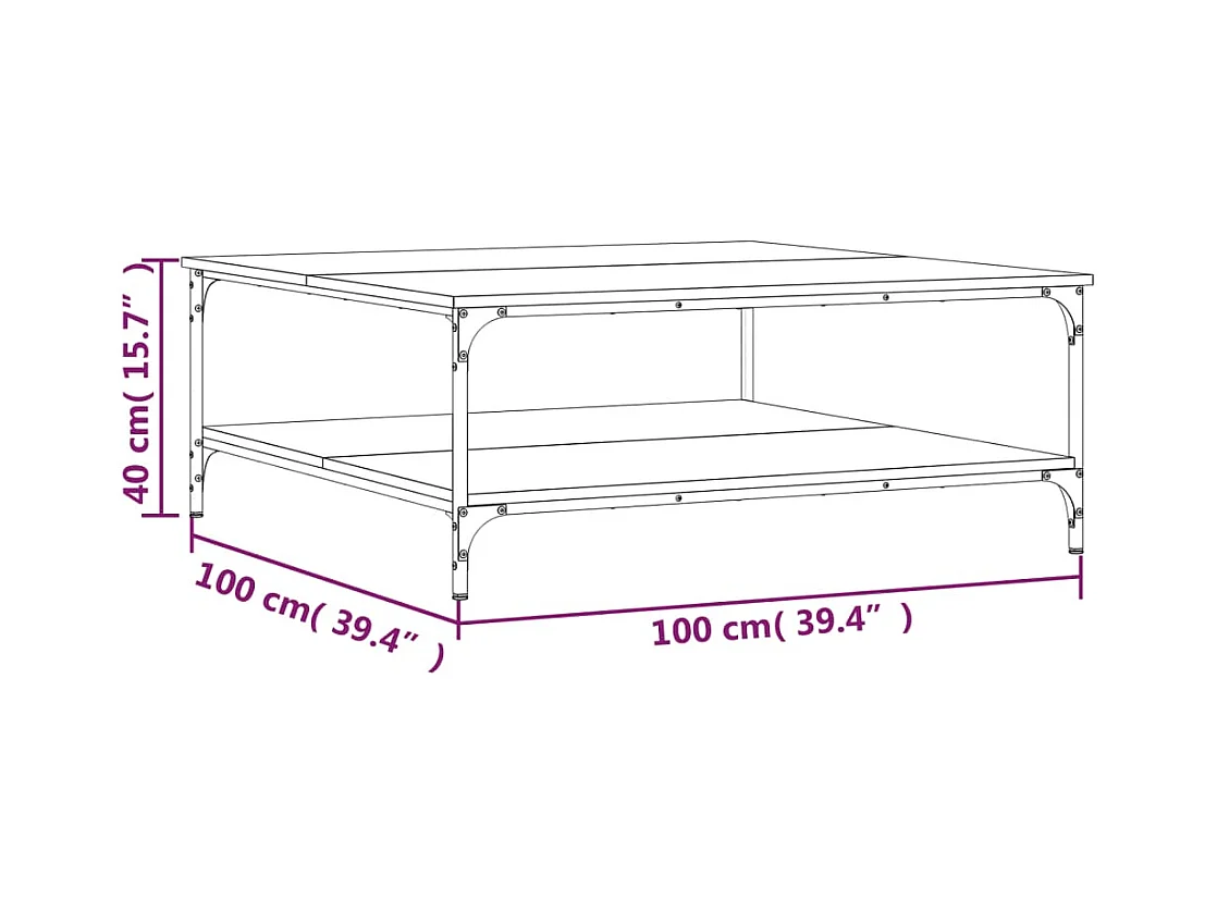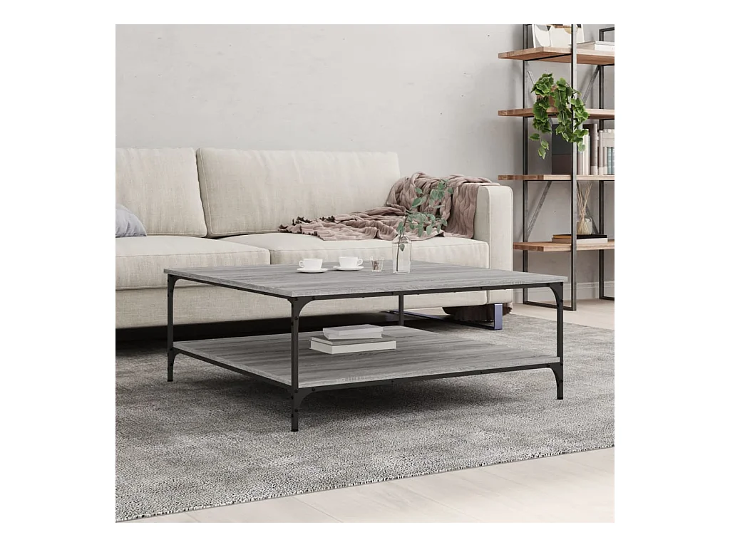 Table basse sonoma gris 100x100x30cm bois d'ingénierie et métal