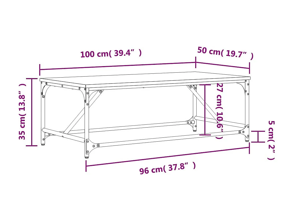Table basse Sonoma gris 100x50x35 cm Bois d'ingénierie