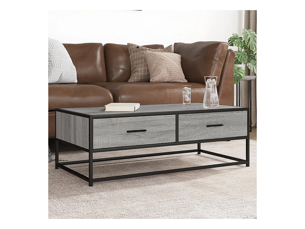 Table basse sonoma gris 100x50x35 cm bois d'ingénierie et métal