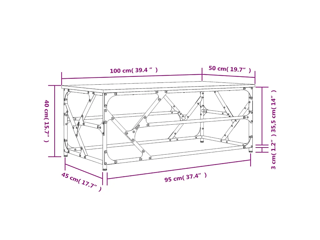 Table basse Sonoma gris 100x50x40 cm Bois d'ingénierie
