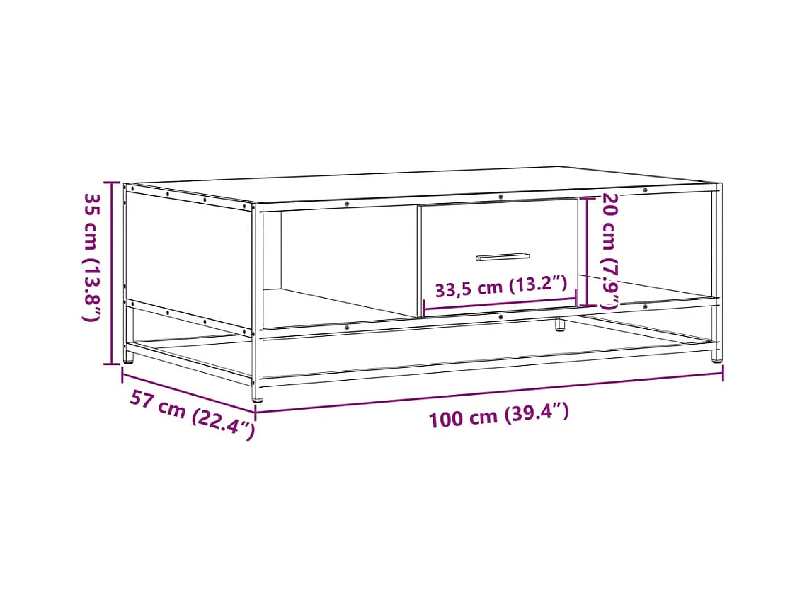 Table basse sonoma gris 100x57x35 cm bois d'ingénierie et métal