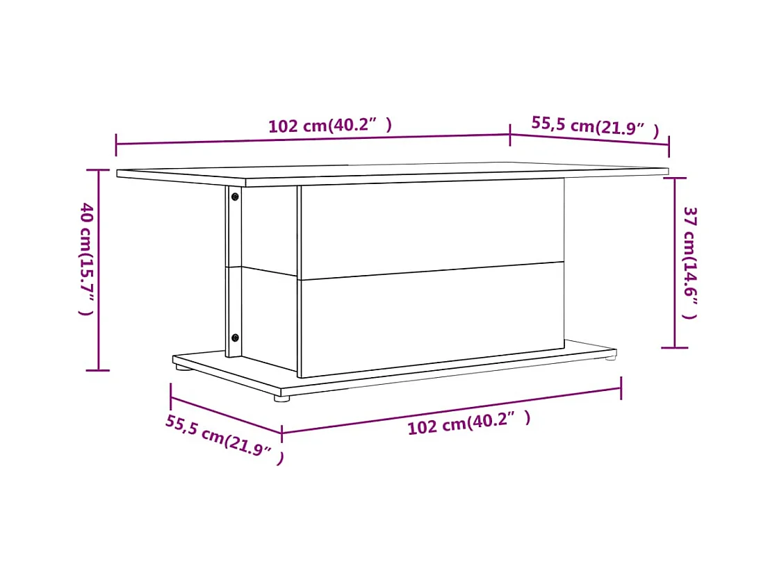 Table basse sonoma gris 102x50x40 cm bois d'ingénierie