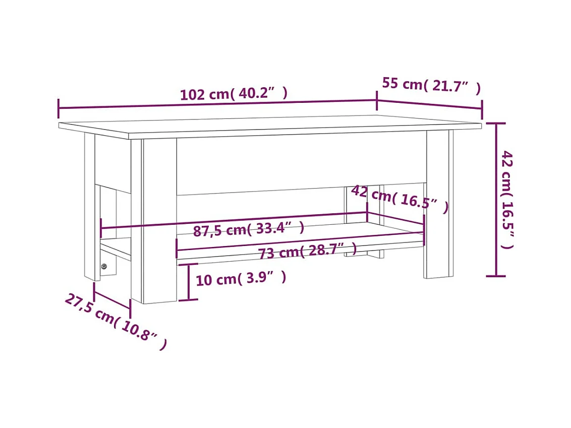 Table basse Sonoma gris 102x55x42 cm Aggloméré