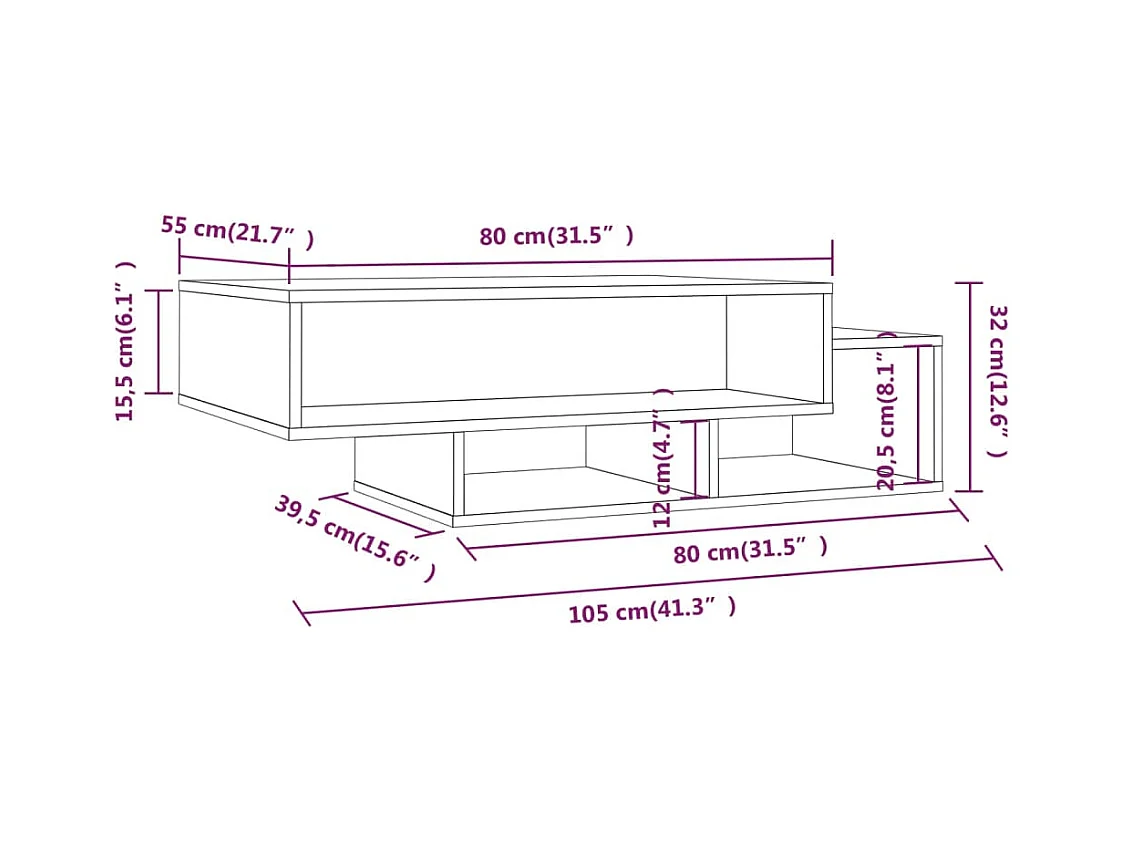 Table basse Sonoma gris 105x55x32 cm Bois d'ingénierie