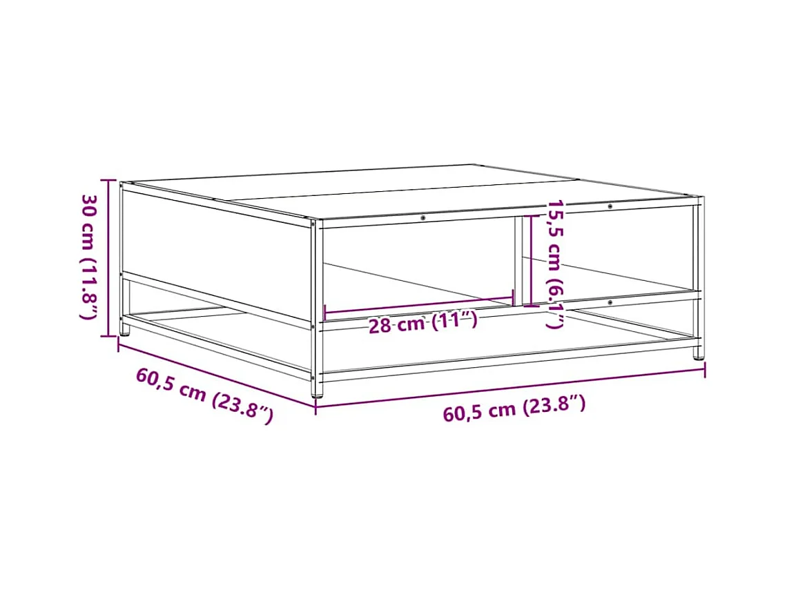 Table basse sonoma gris 60,5x60,5x30 cm bois d'ingénierie/métal