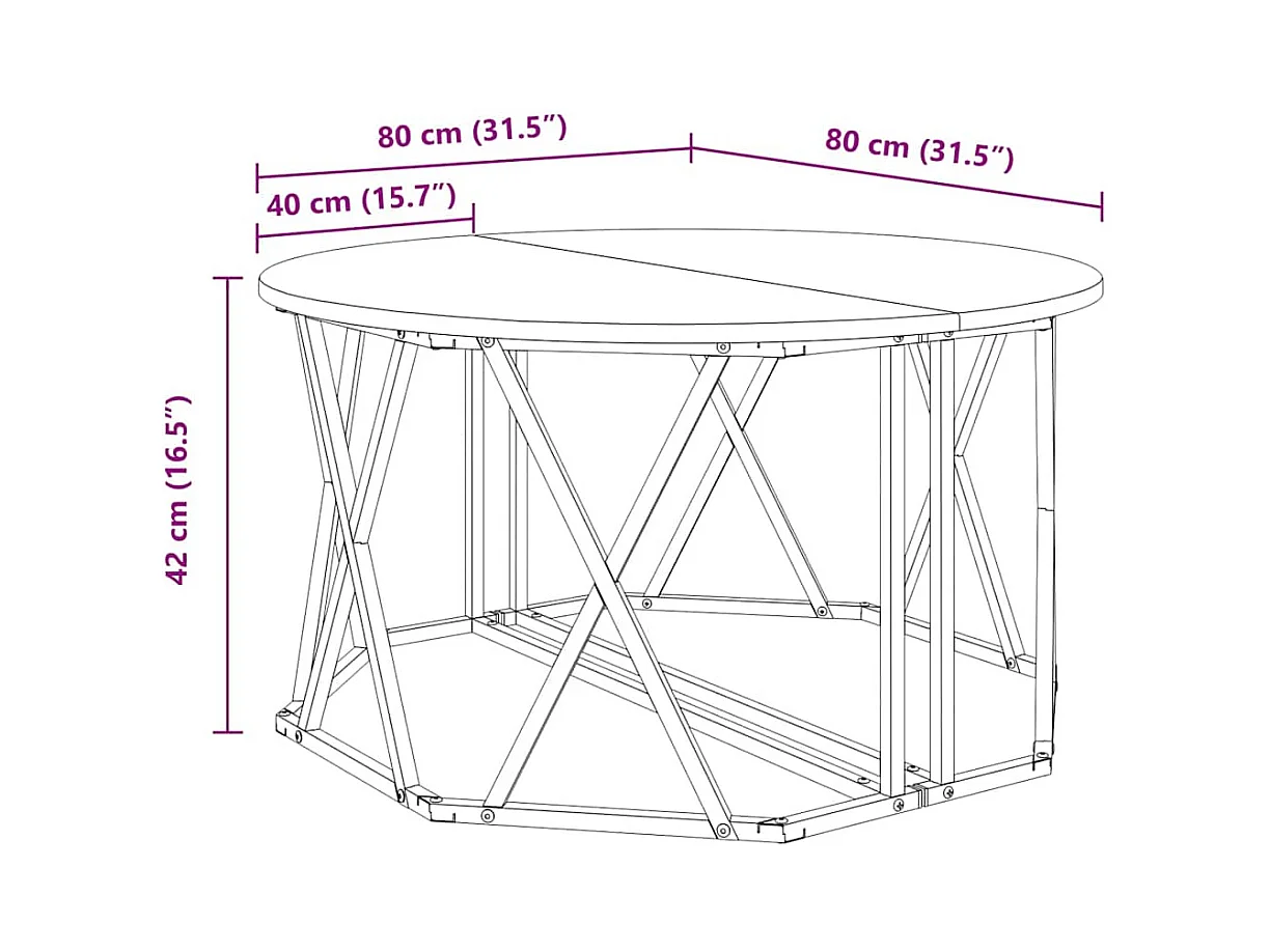 Table basse Sonoma gris 80 x 80 x 42 cm
