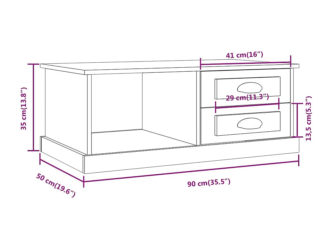 Table basse Sonoma gris 90x50x35 cm Bois d'ingénierie