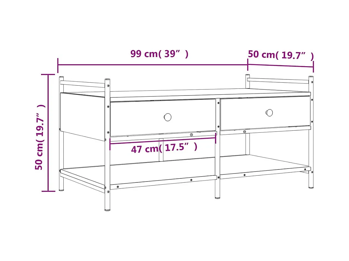 Table basse sonoma gris 100x50x45 cm bois d'ingénierie et métal