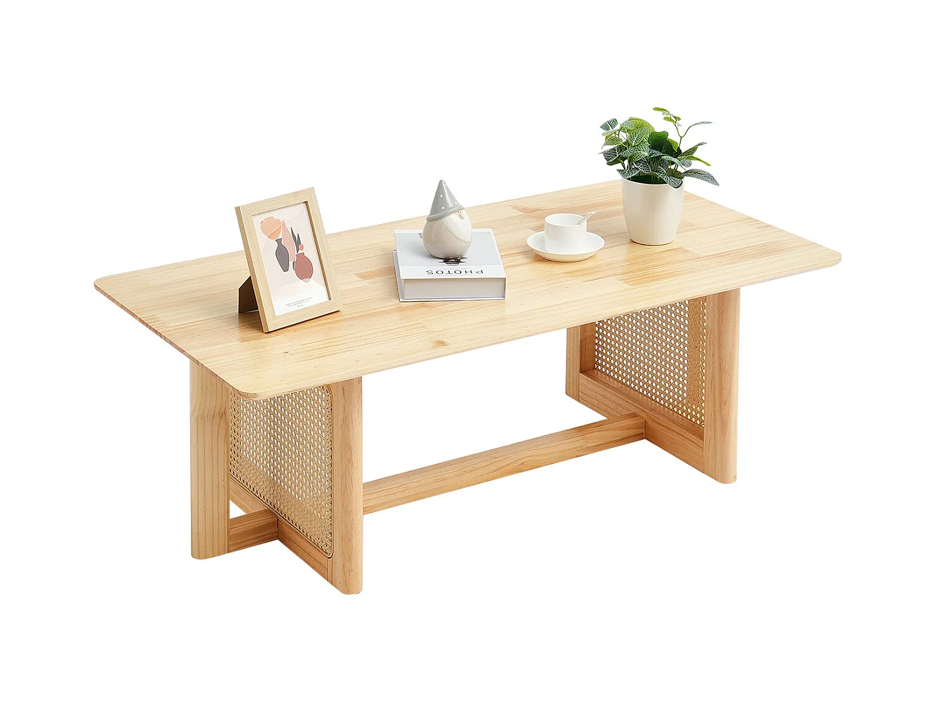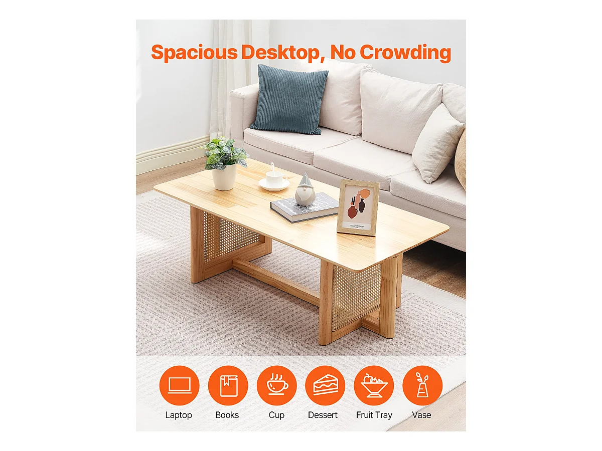 Table Basse SucceBuy 120 x 60 x 40 cm, Table Basse Rectangulaire en Rotin à 1 Niveau pour le Salon