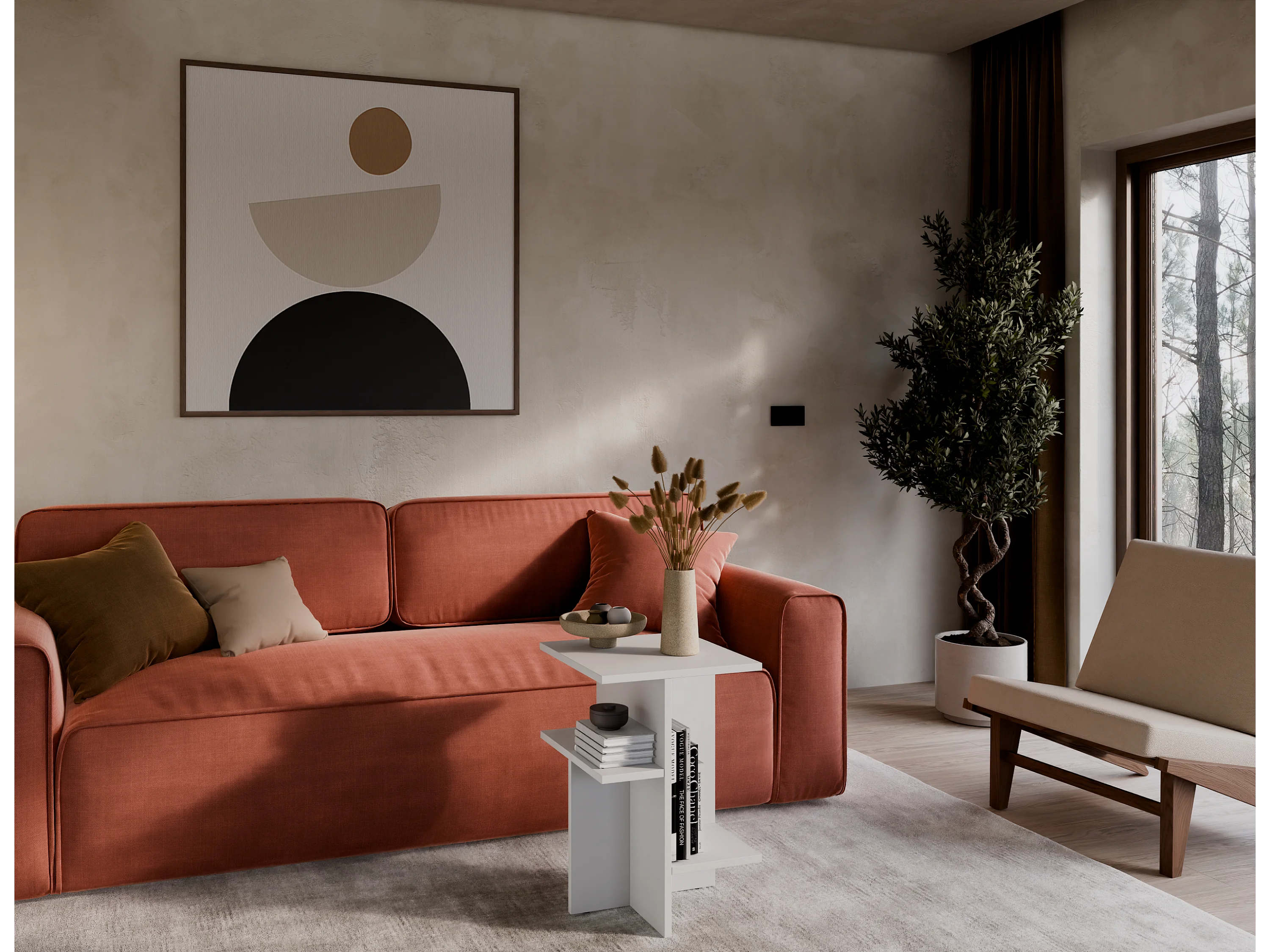 Table basse / Table d'appoint de salon – 60 x 40 x 40 cm, blanc mat / chêne Sonoma / noir mat