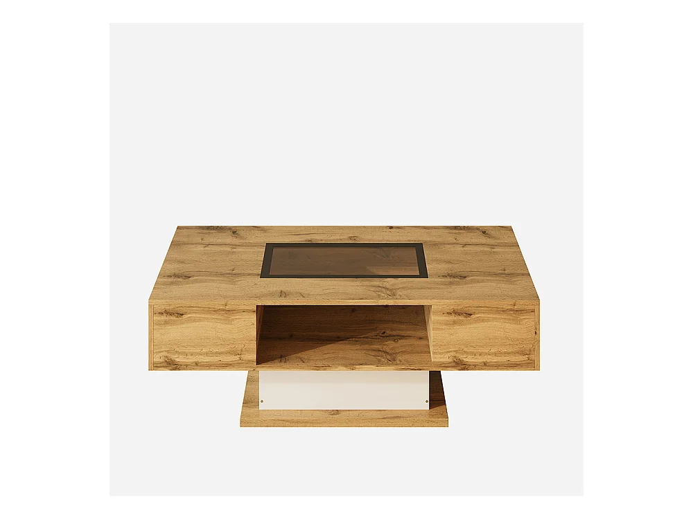 Table basse, table de salon avec lumière LED changeant de couleur, avec verre, table d'appoint avec deux tiroirs
