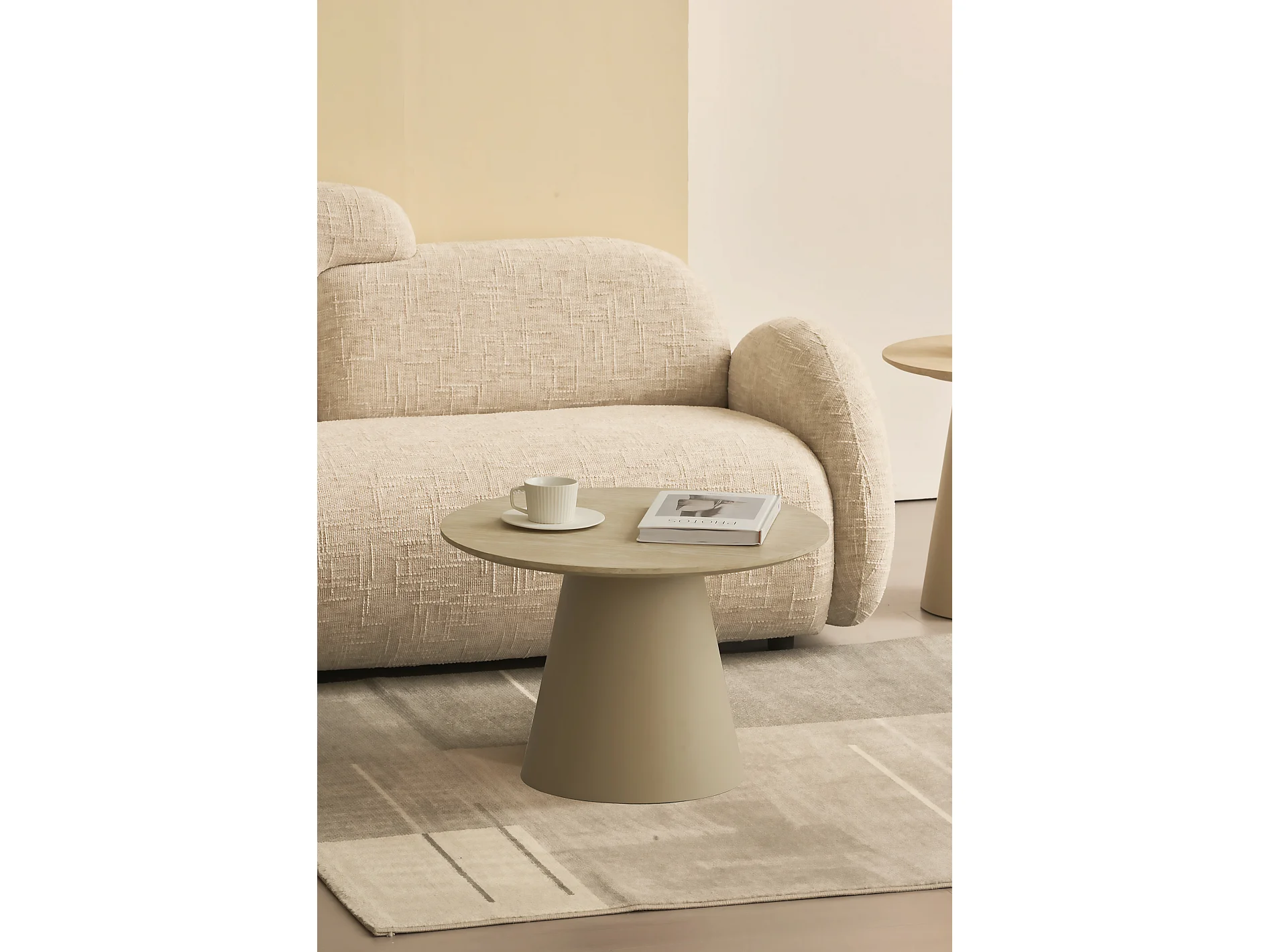 Table basse Tango - Ronde - MDF et travertin - Beige