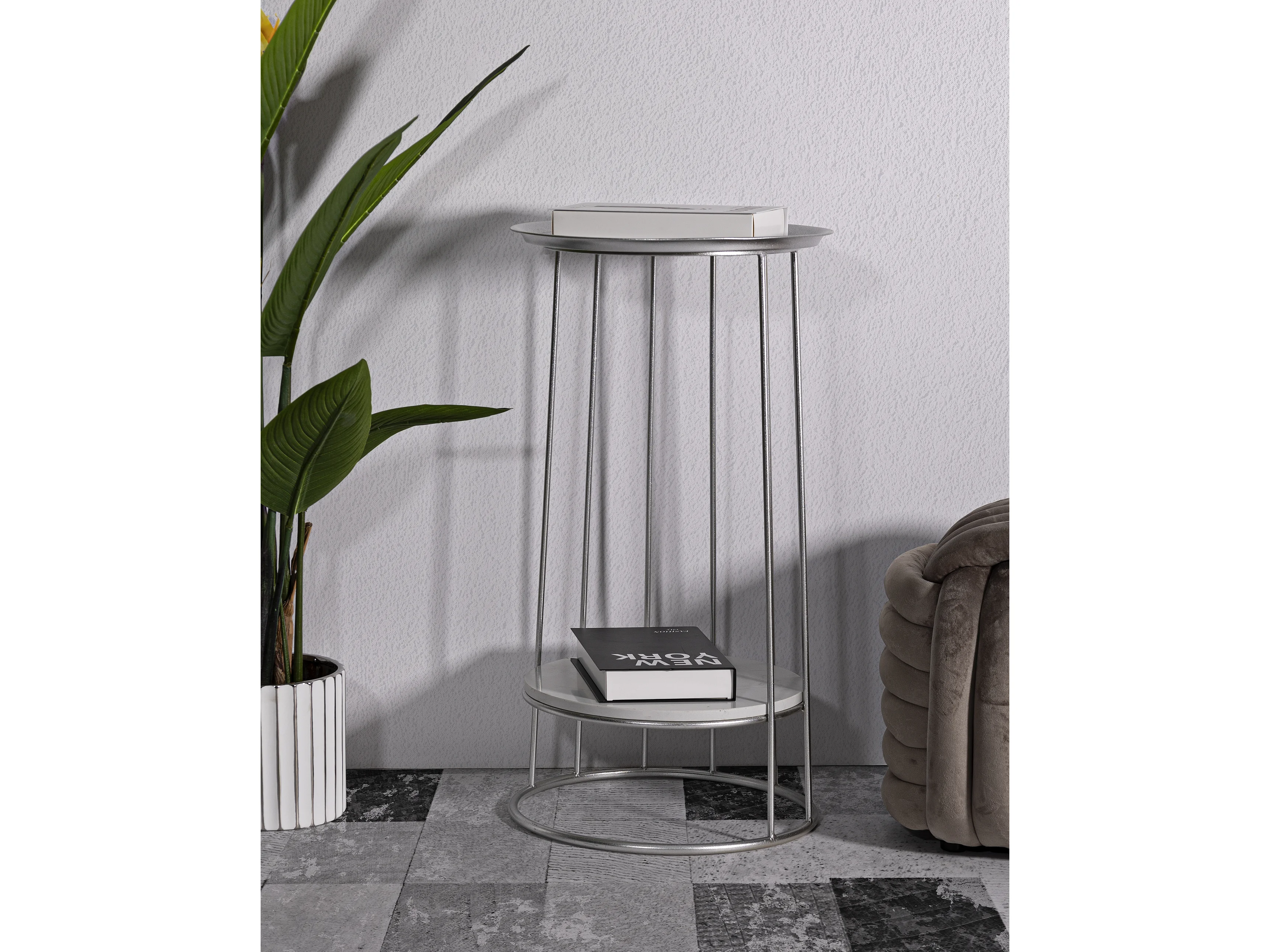 Table d'Appoint Avec Étagère en Marbre "Tower" 76cm Argent