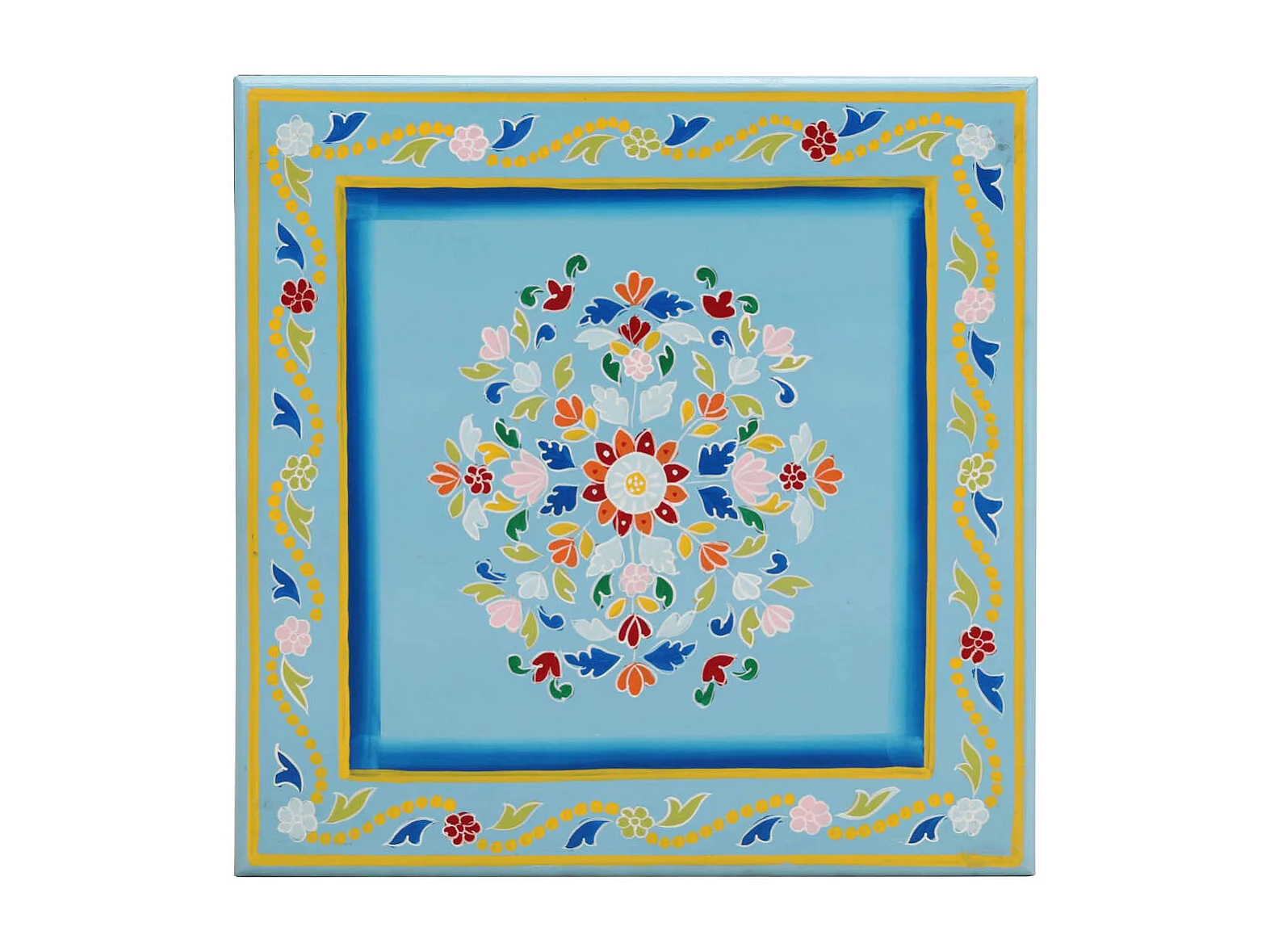 Table basse turquoise bois de manguier massif peint à la main FR67759