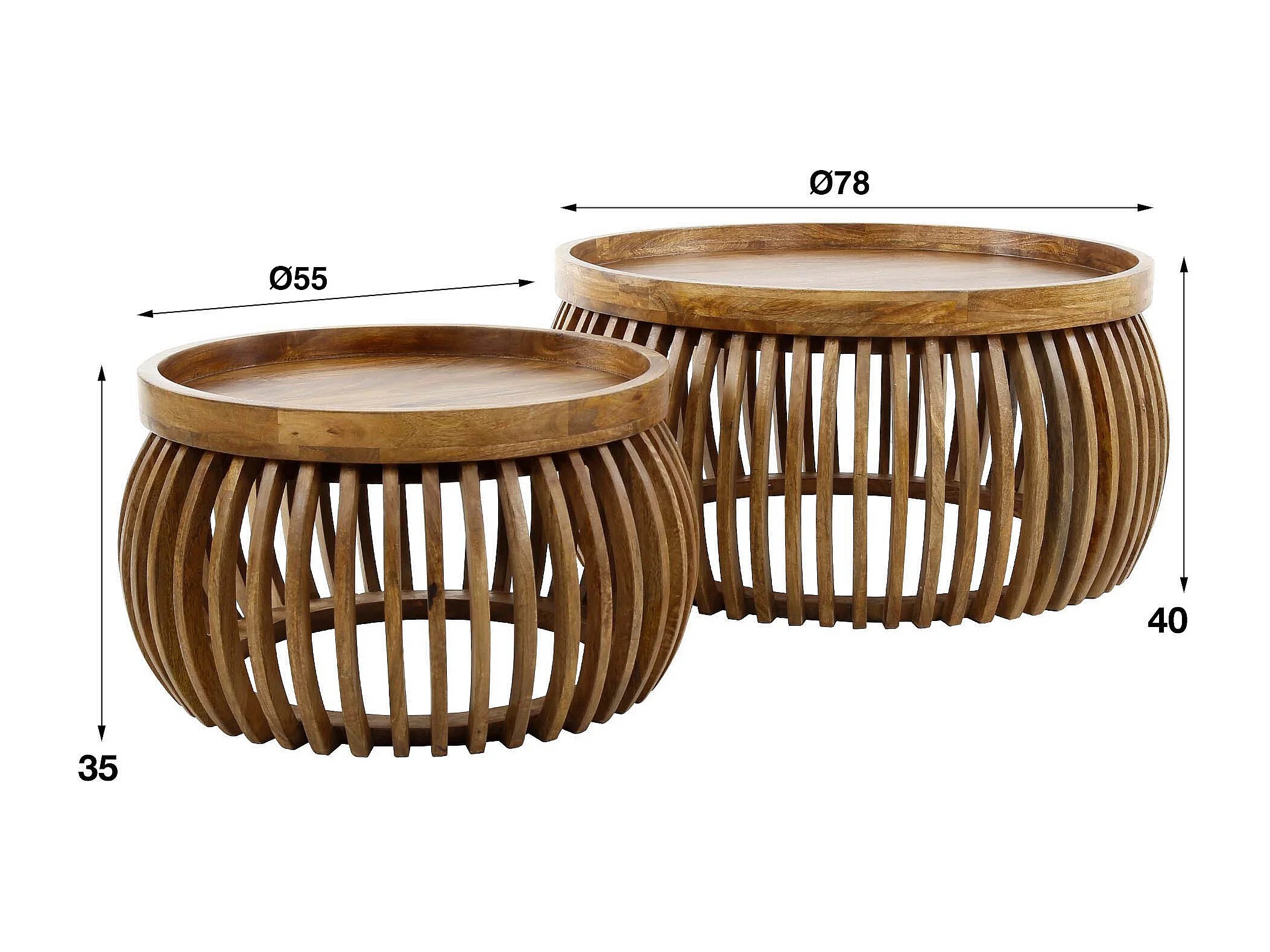 Table basse Tweak - Manguier massif - Couleur sable - Lot de 2