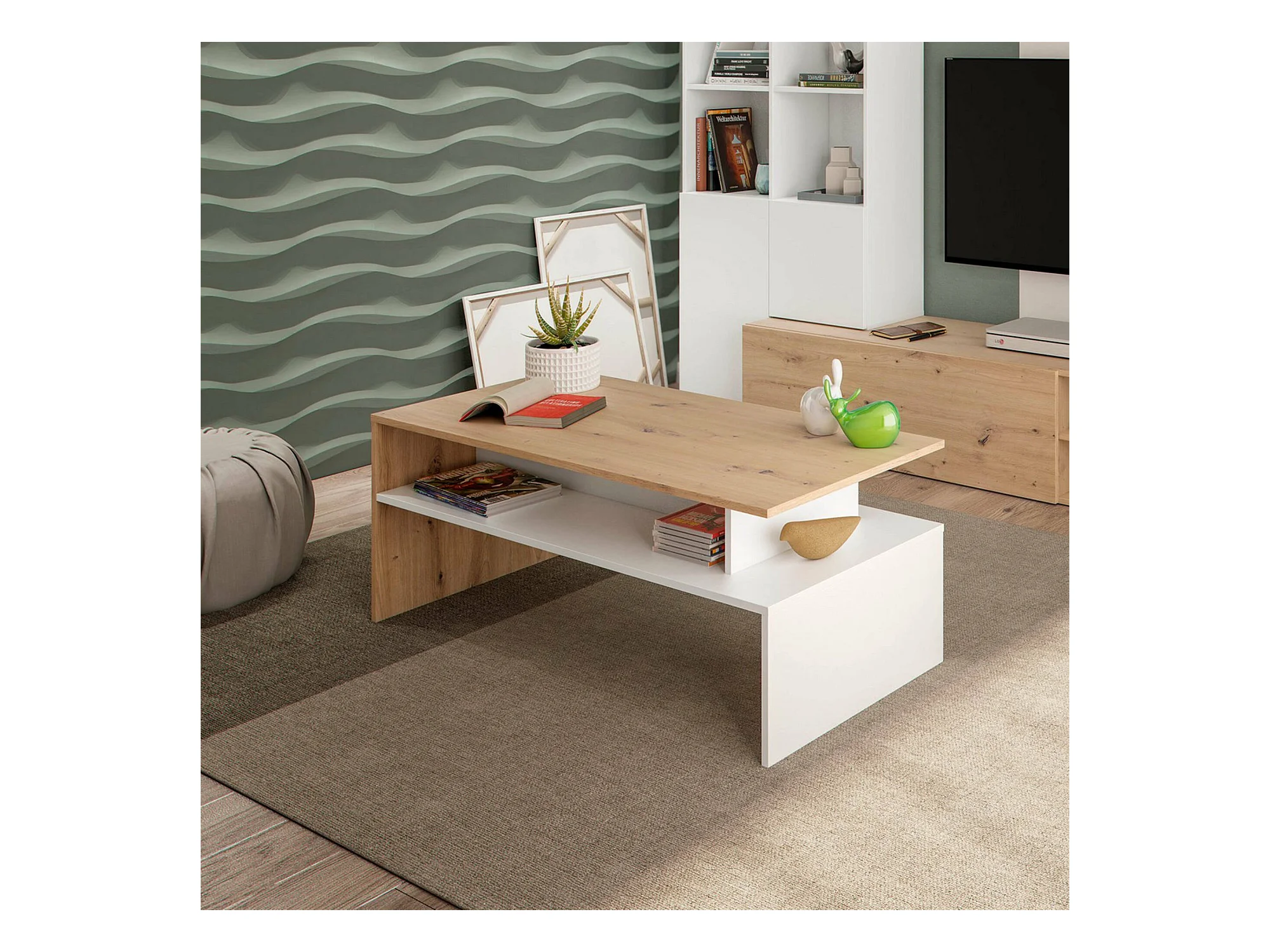 Table basse Vail, Table basse de salon, Table basse, Table basse, 100x50h43 cm, Chêne noué et Blanc Brillant
