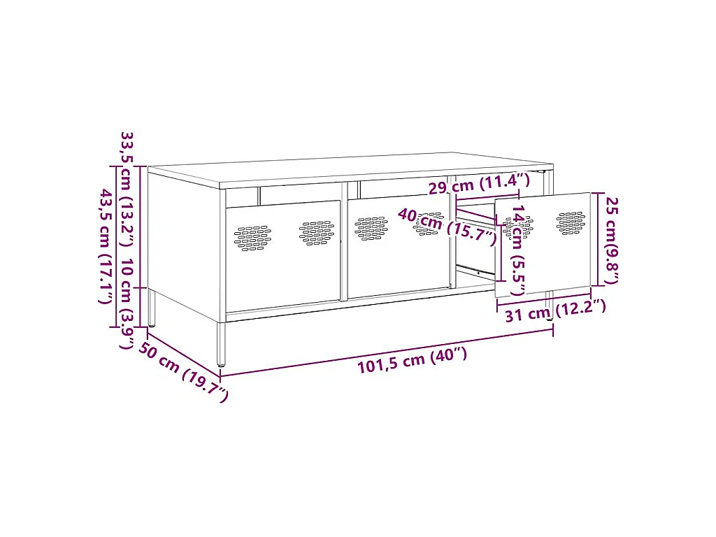 Table basse vert olive 101,5x50x43,5 cm acier laminé à froid
