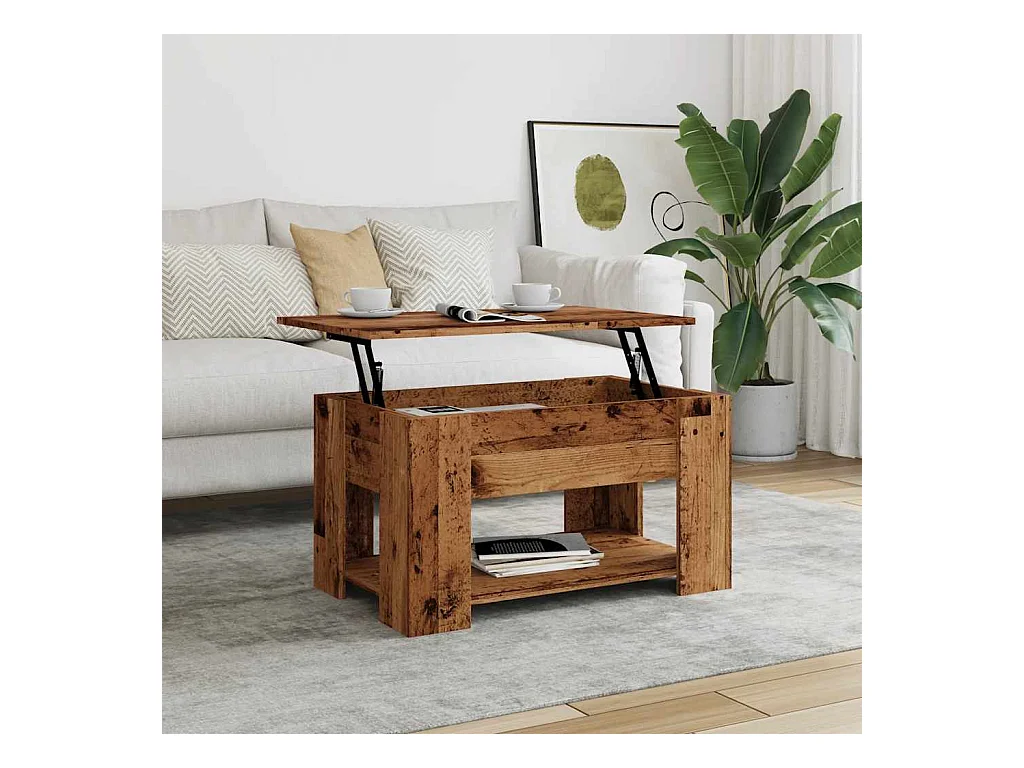 Table basse vieux bois 79x49x41 cm bois d'ingénierie