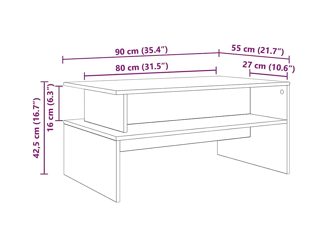Table basse chêne sonoma 90x55x42,5 cm bois d'ingénierie