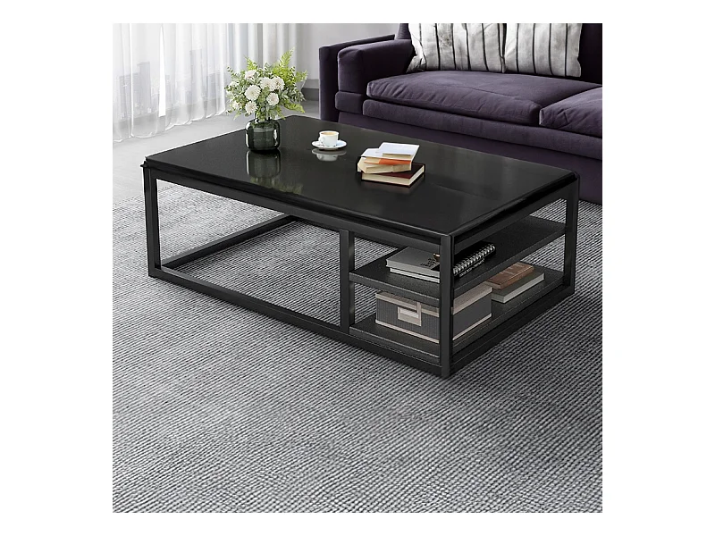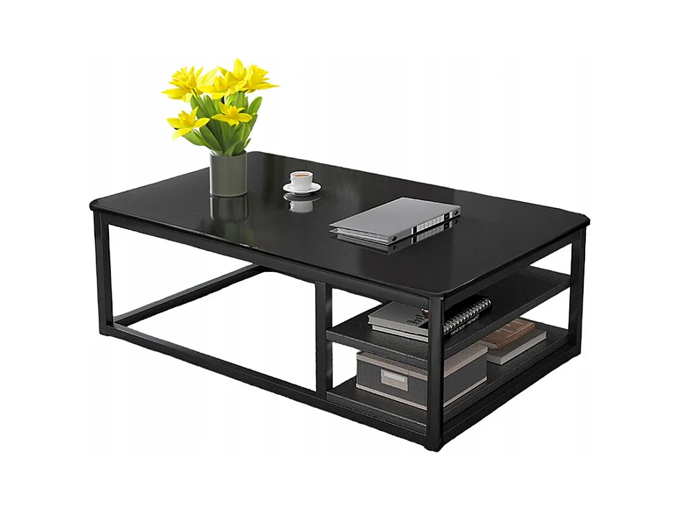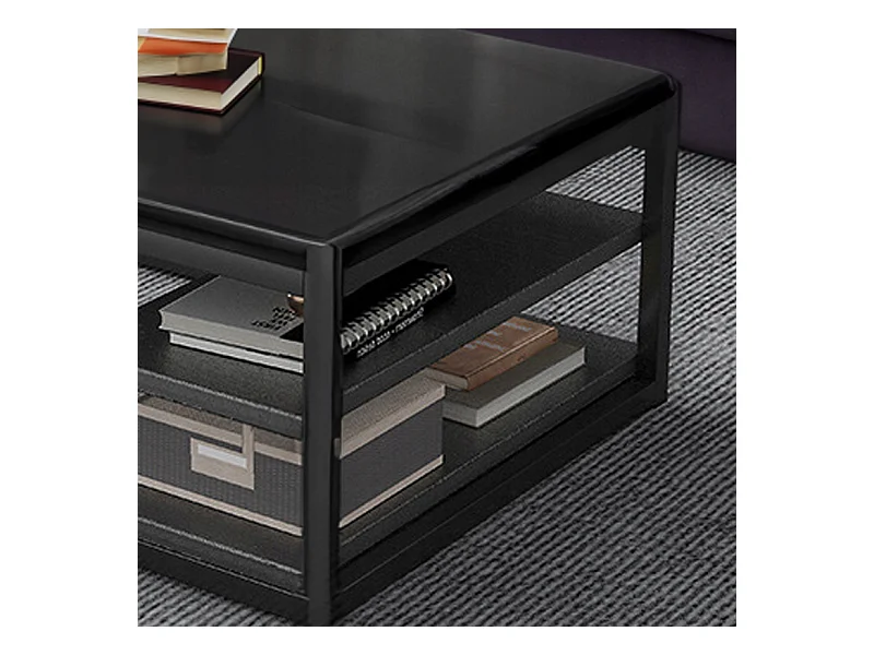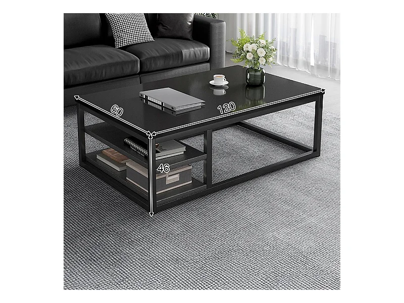 TABLE BASSES MODERNE BANQUETTE AVEC ÉTAGÈRES SALON GRAND 120 CM LOFT NOIR