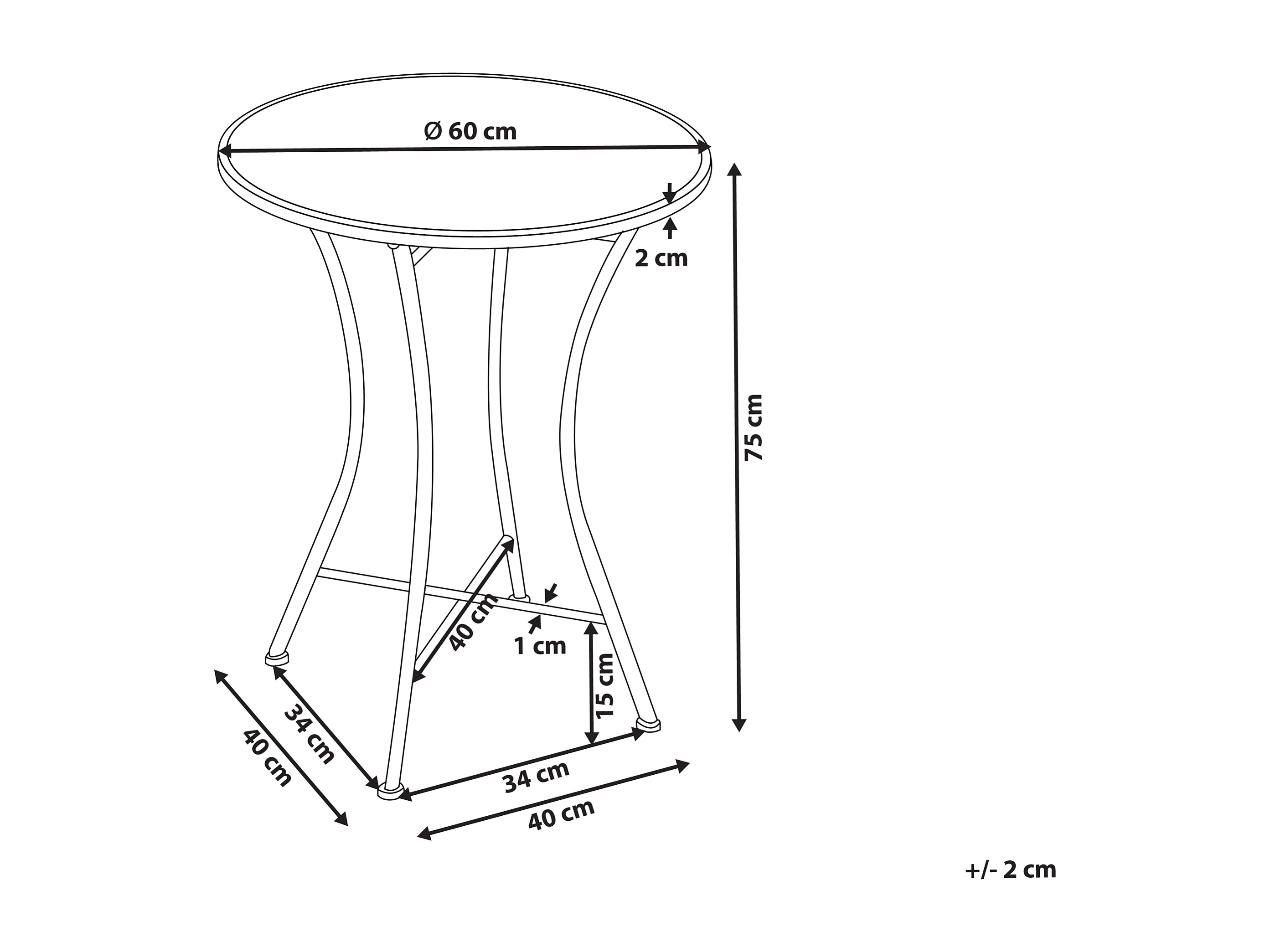Table bistrot CAMPRENA 60 cm 60 cm Métal Noir
