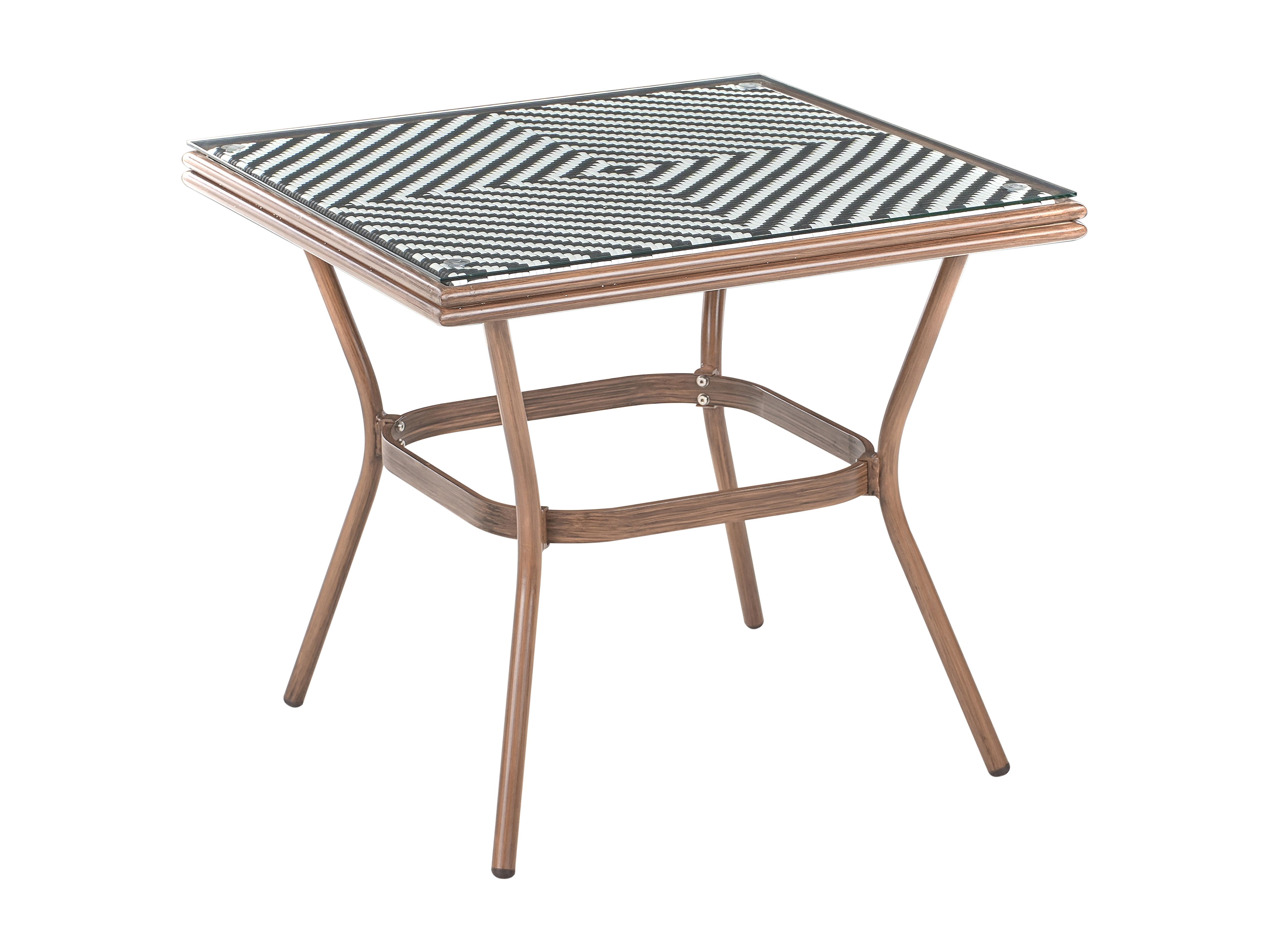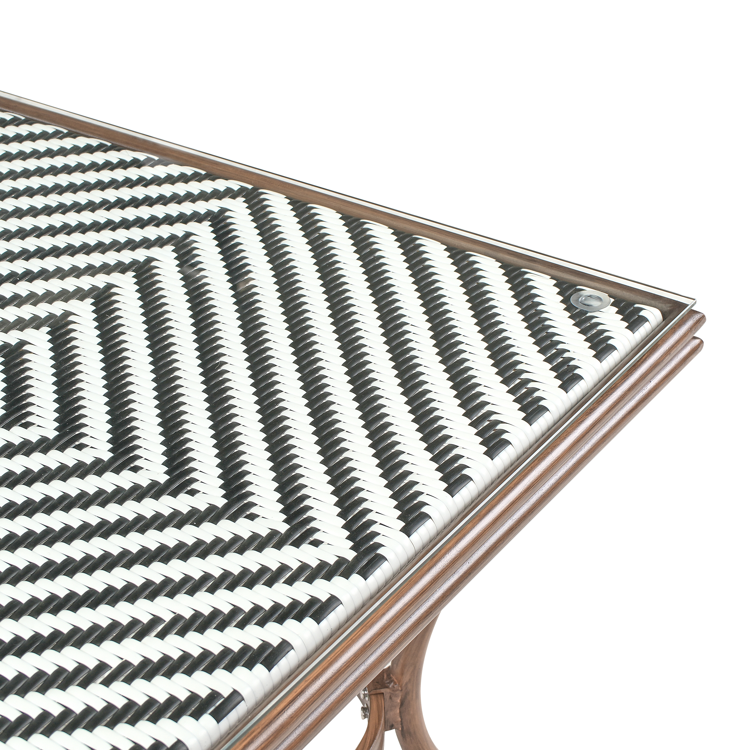 Table de jardin dessus en verre noir 80x80x75 cm résine tressée