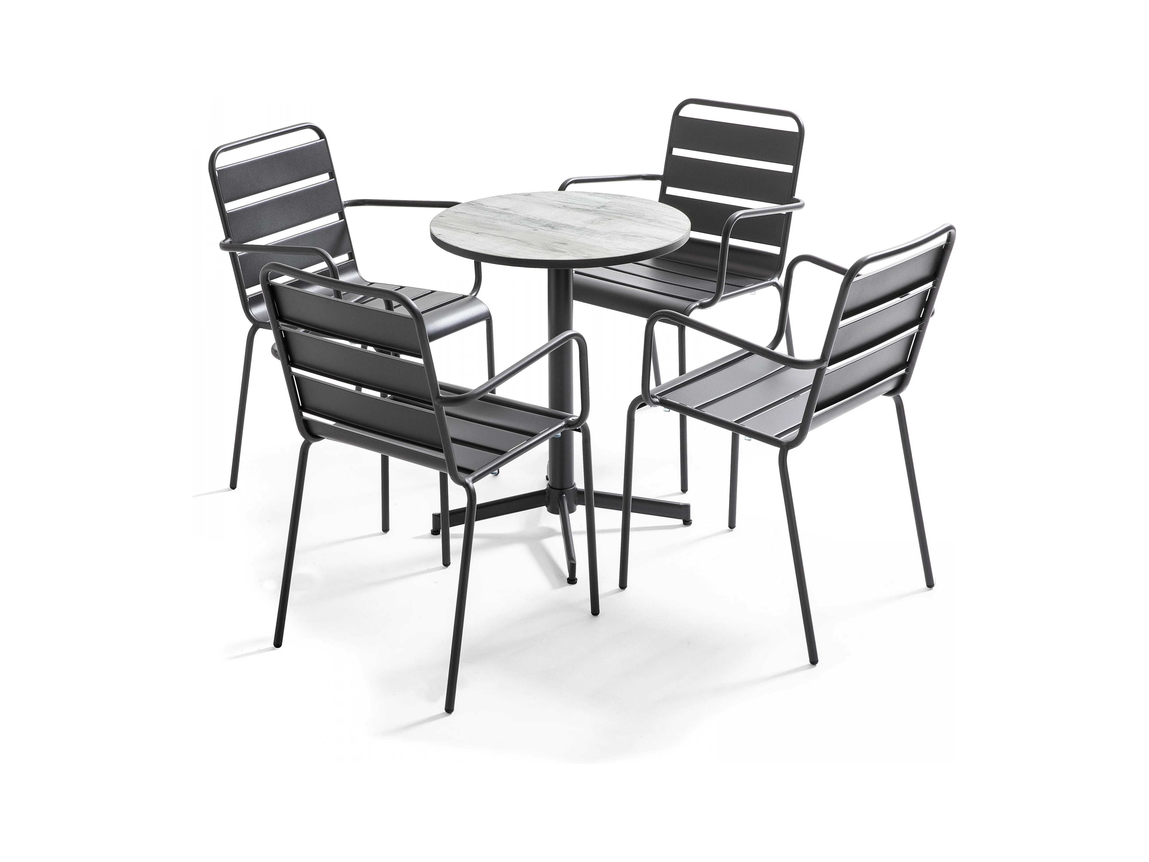 Table bistrot ronde en acier et céramique effet bois gris - Tivoli