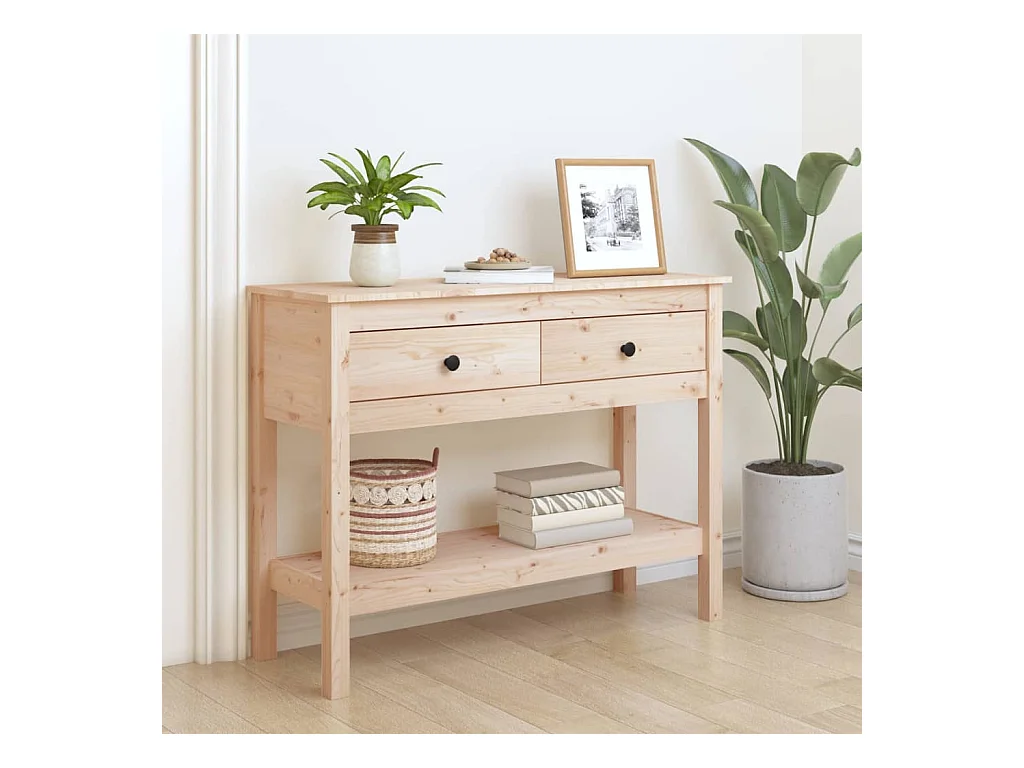 Table console Noir 105x30x75 cm Bois massif pin /rotin naturel