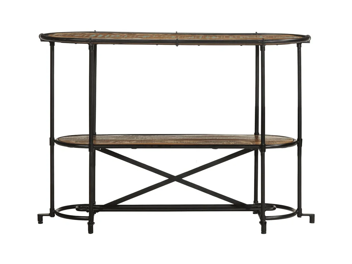 Table console marron 110x35x76cm bois massif de manguier et fer