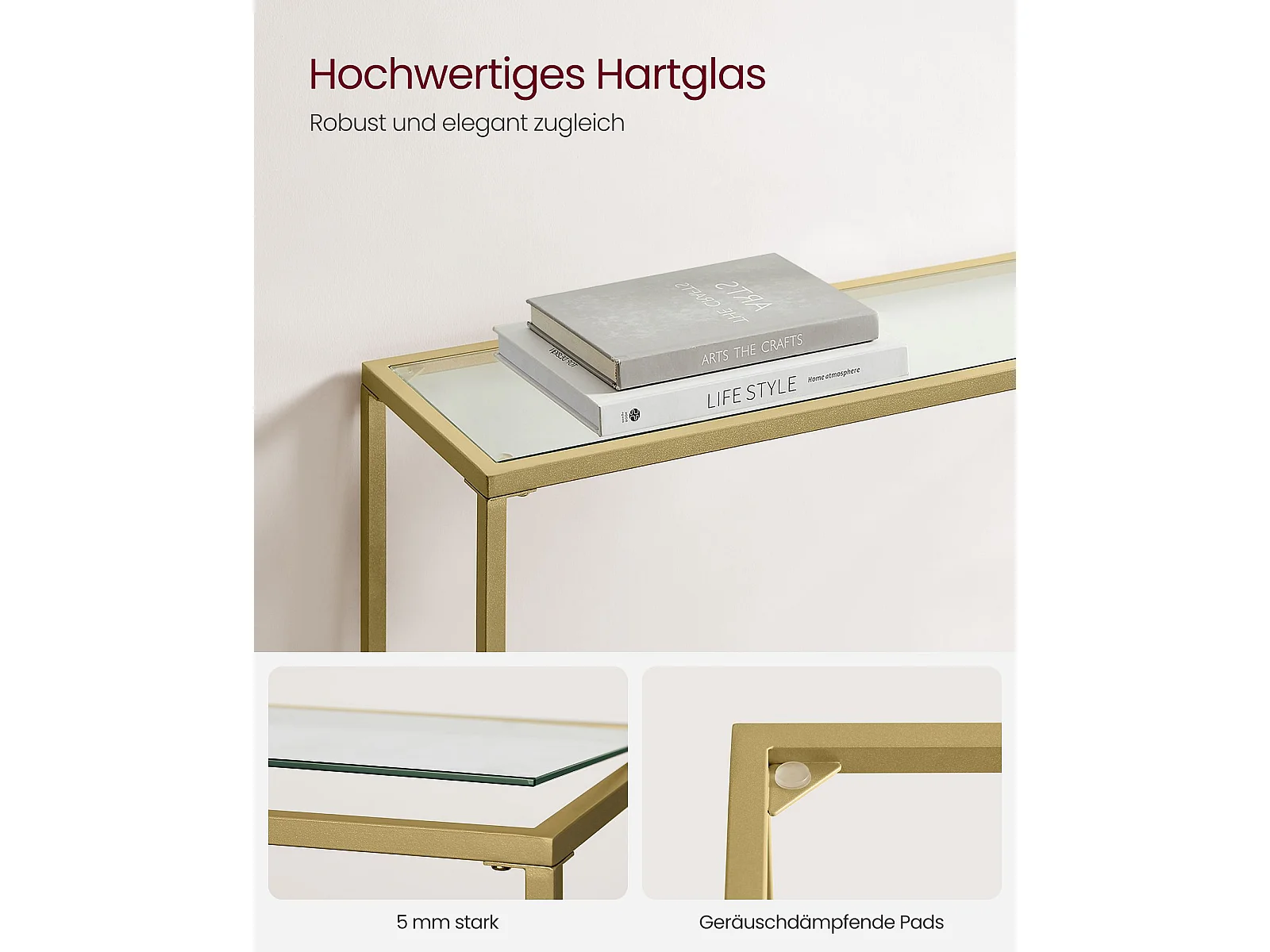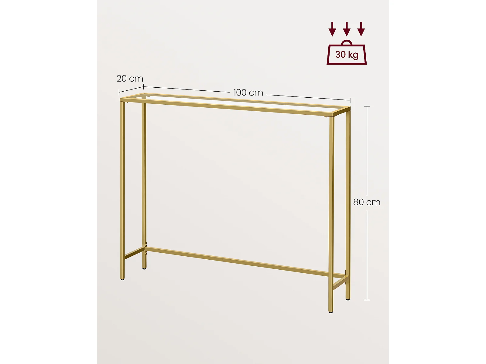 Table console 20x100x80 cm Or pâle