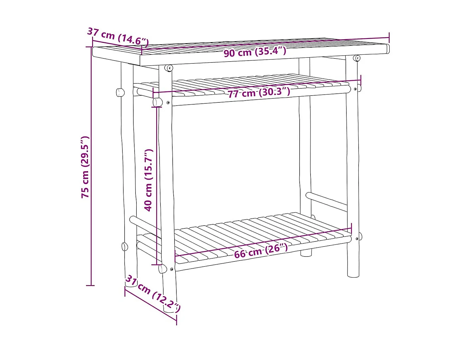 Table console 90x37x75 cm bambou