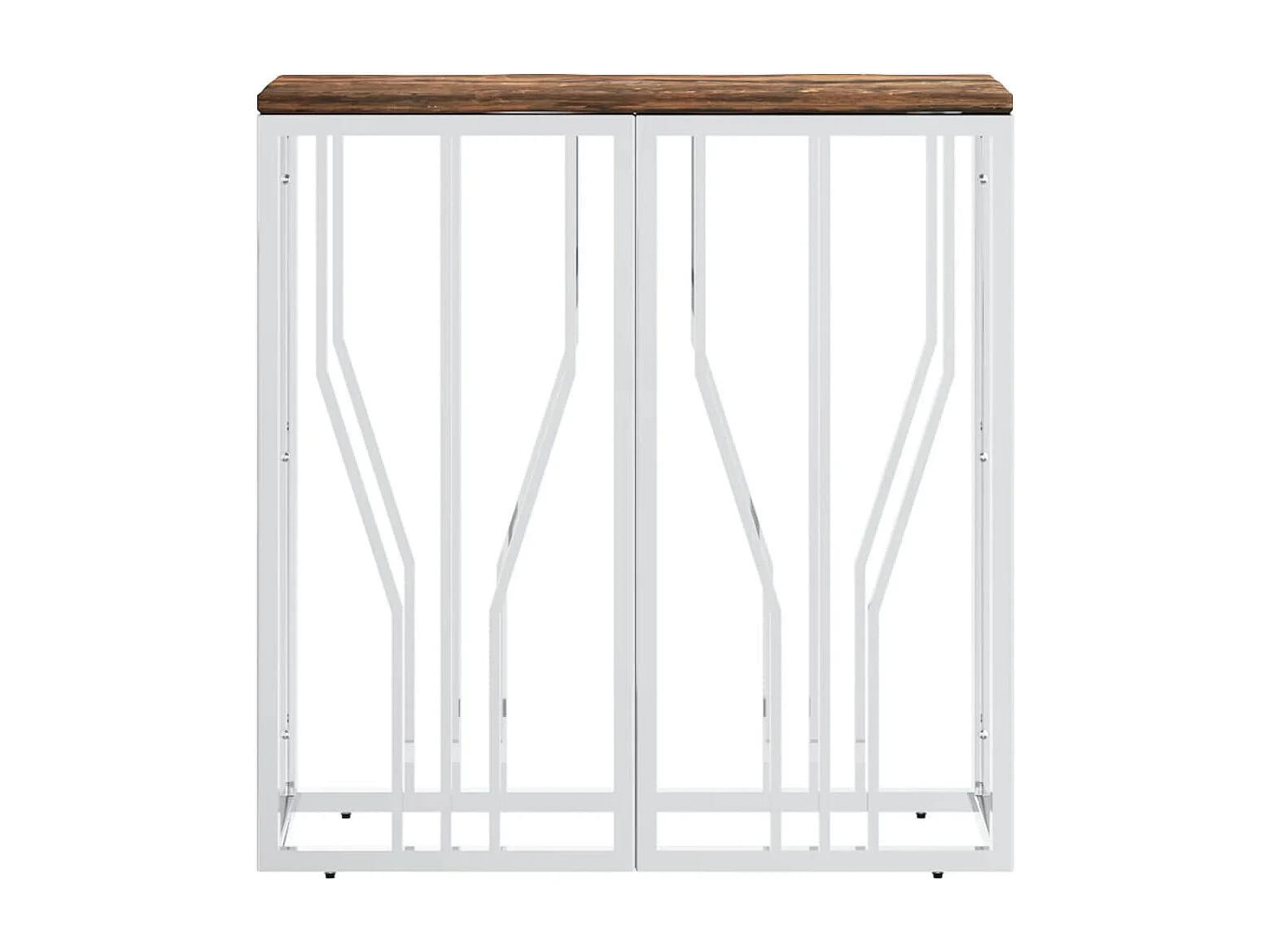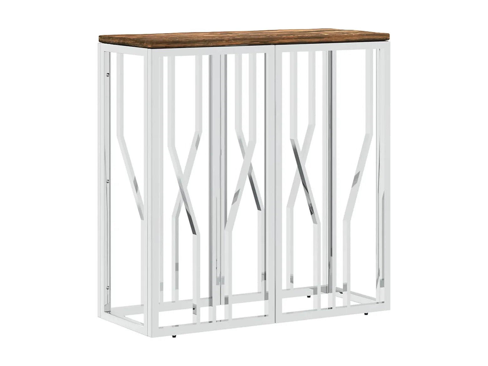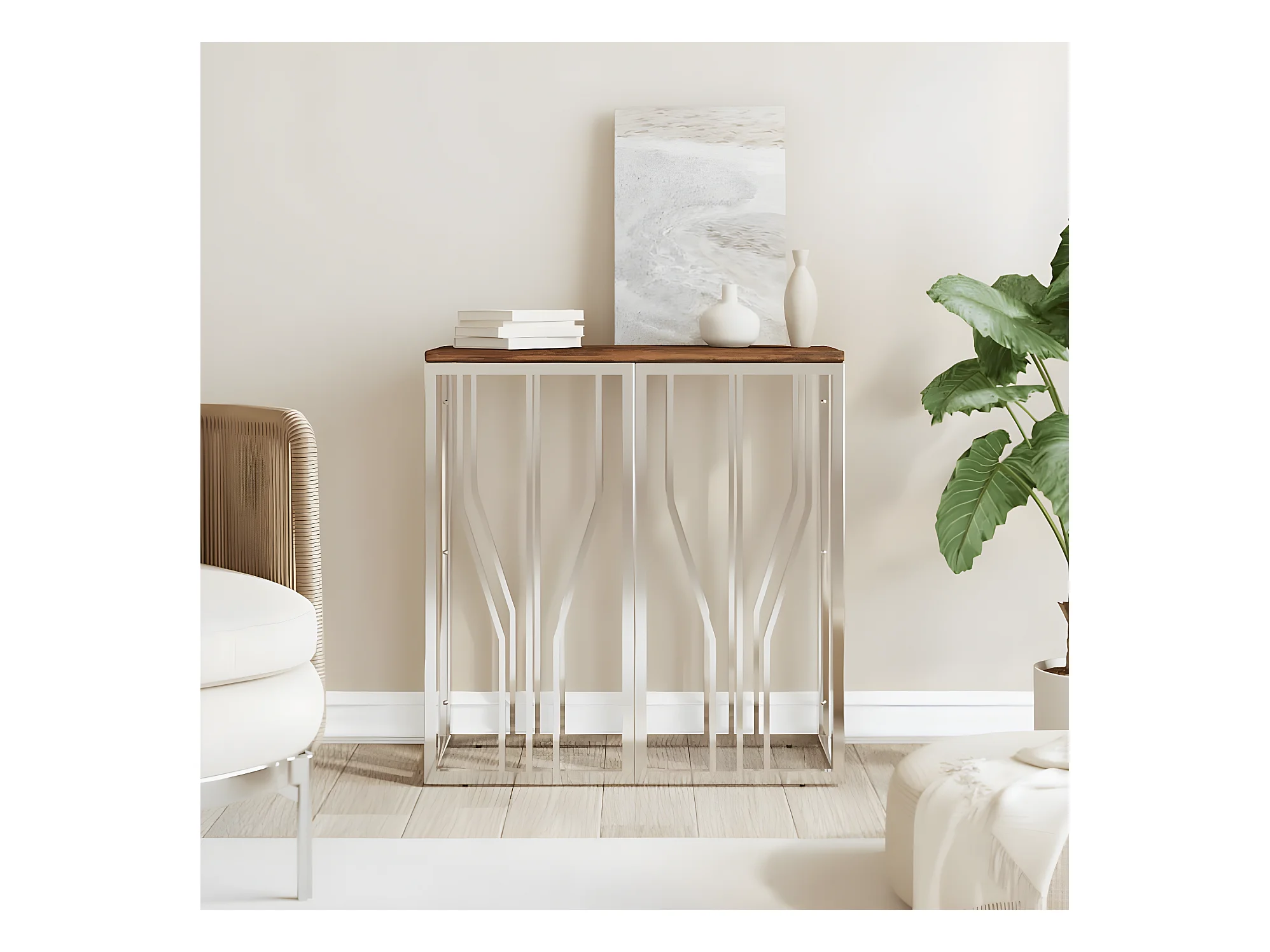 Table console argenté acier inoxydable/bois massif récupération GHR52146